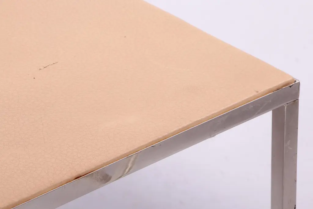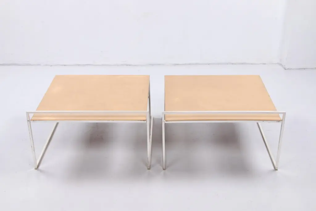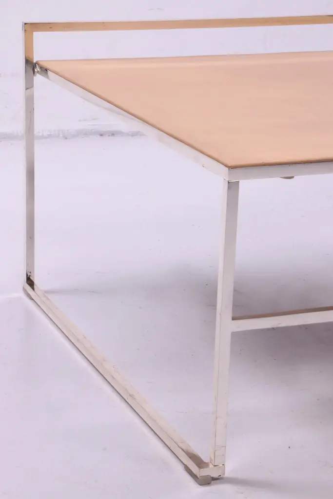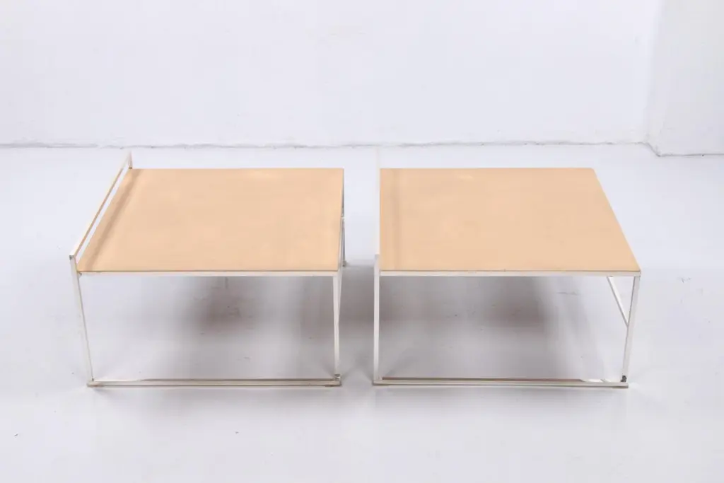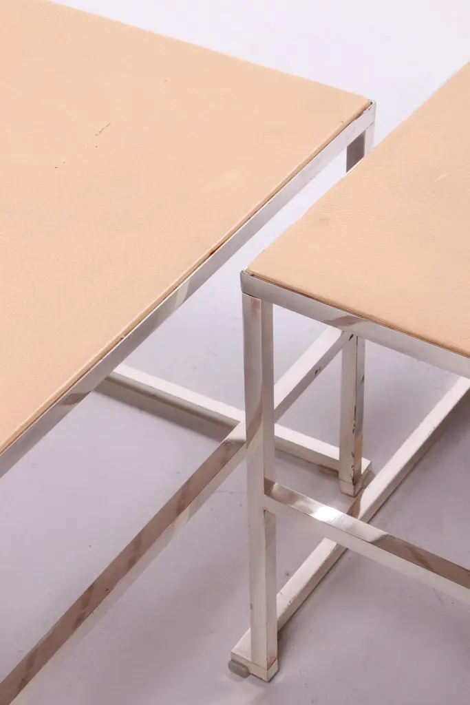 Poltrona Frau set of 2 side tables with leather top 1970, ItalyFrom the home of Poltrona Frau in Northern Italy comes this timeless Statement Piece in excellent vintage and original condition. We have 2 sets of two beautiful stylish side tables.The frame is made of chrome, there are some signs of wear here and there, which is not surprising given the age. The top is made of cream colored leather.Sustainable: environmentally conscious By supplementing your interior with vintage furniture, you are environmentally conscious. This is because no new raw materials need to be used for this product.When you choose vintage, you use what is already there and that makes it sustainable. You may not give the furniture a second, but even a third or fourth life. Vintage furniture is often high-quality products that last a number of lives for a reason.Vintage has a story There is a story behind every vintage product. Some furniture has a rich history and for some the story is still visible or tangible. The traces of use give a glimpse into the life of the previous owner.