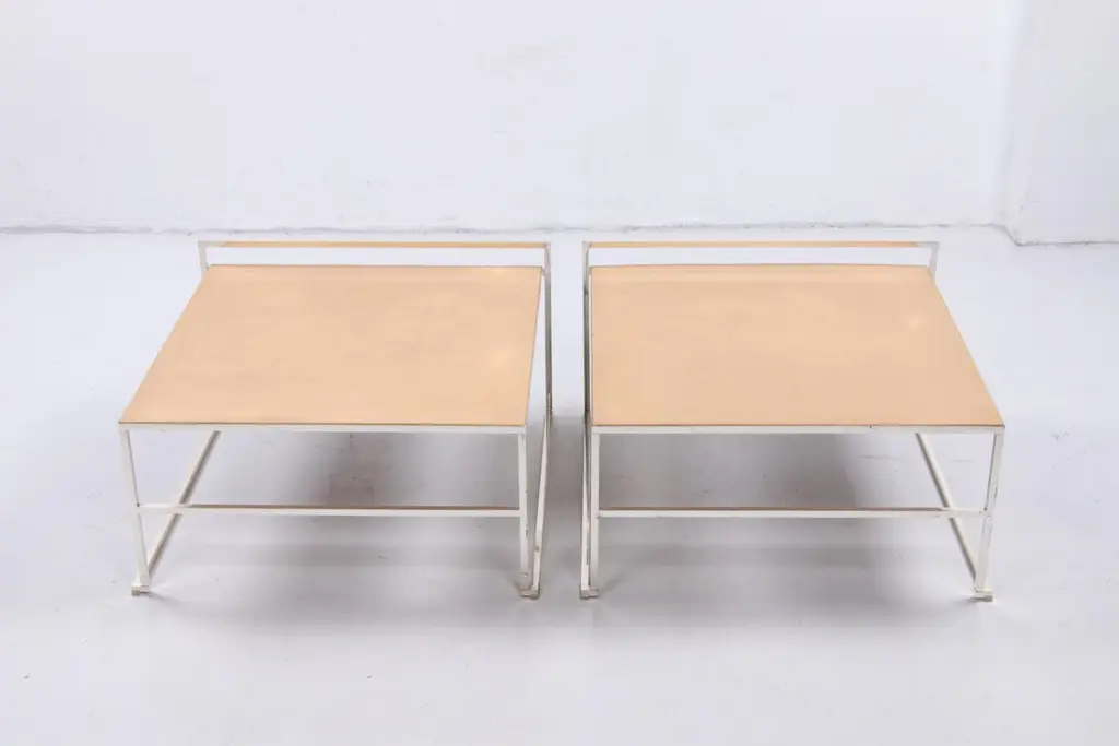 Poltrona Frau Set Of 2 Side Tables With Leather Top 1970, Italy