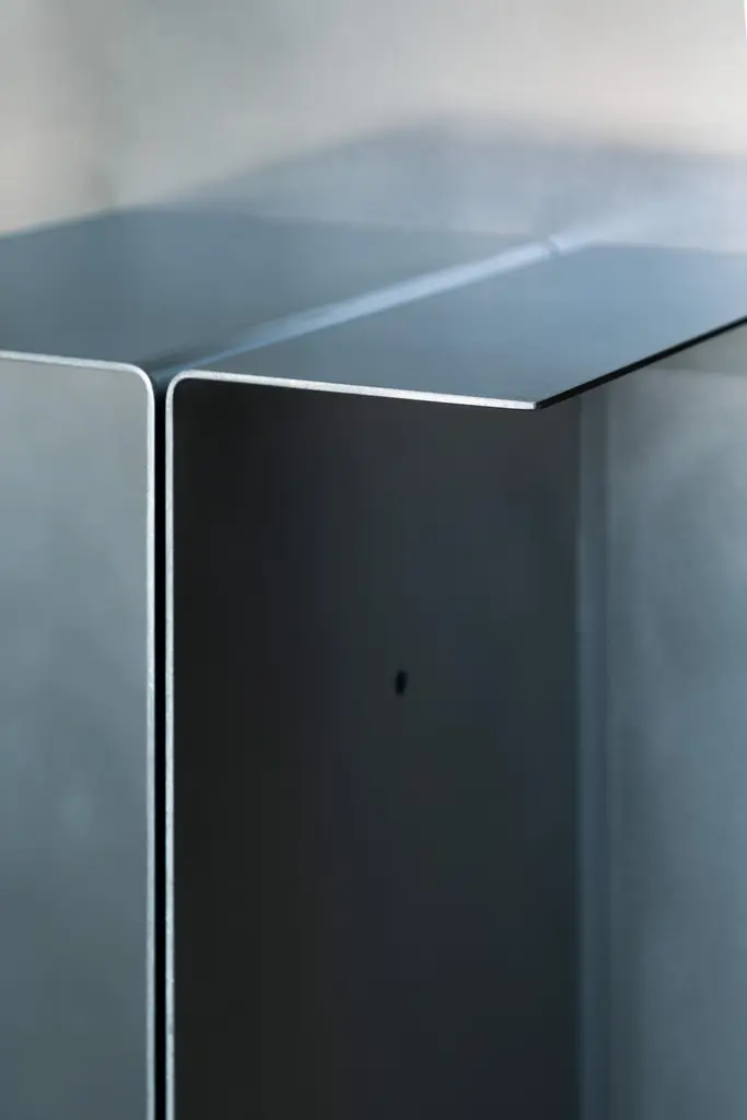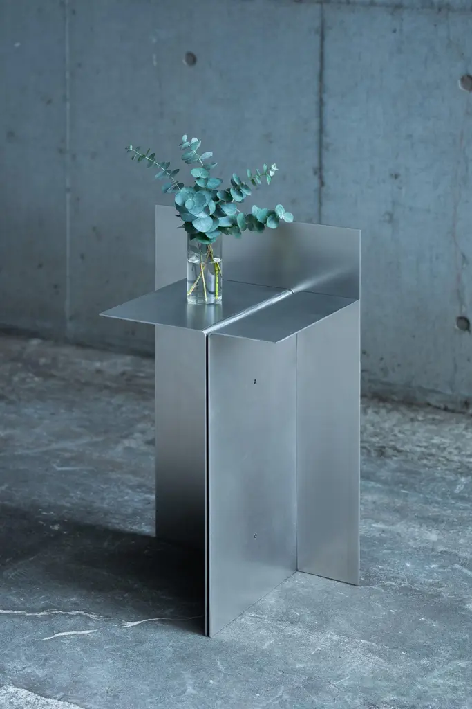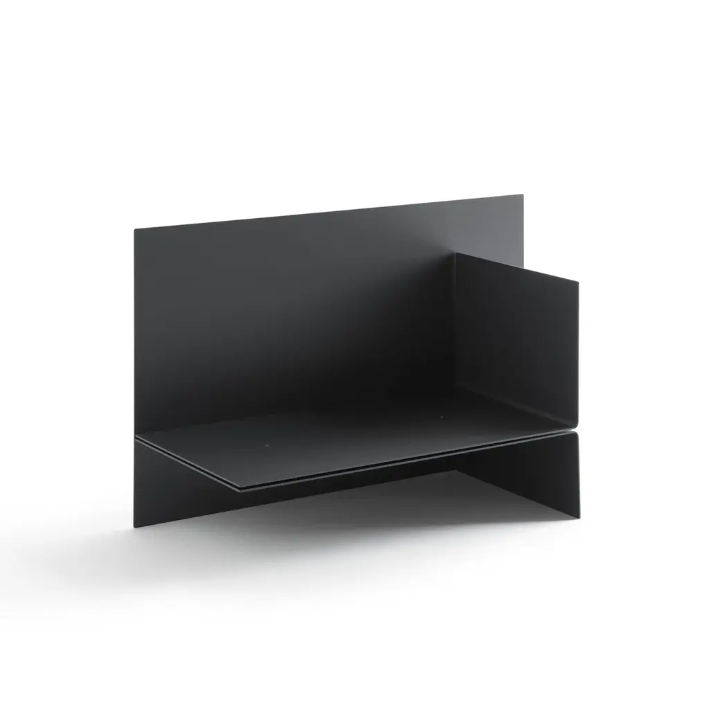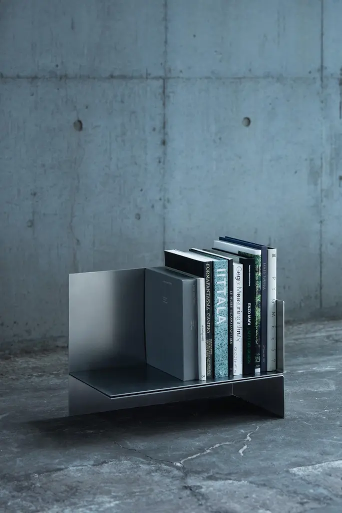 Polysemy_Black by So KoizumiDimensions: W 56.5 x D 25 x H 35 cmMaterials: Steel.Weight: 11 Kg. “Polysemy”, an object that can be placed in different ways from one shape to combine various functions such as a book-shelf or side table. ‘Polysemy’, a design concept embodying the essence of ' one thing has many meanings.'While conventional objects typically serve a singular function, like a chair for seating or a desk for work, ‘Polysemy’ breaks this mold. It is a versatile object that, from a single shape, can be arranged in various ways to fulfill diverse functions, such as transforming into a bookshelf or a side table. Unlike traditional designs that limit functionality, ‘Polysemy’ adapts to different spaces and situations, offering users the freedom to utilize it in numerous ways.By viewing fossils not as relics of the past but as metaphors linking the past and future, he considers that things created in the present will eventually shape the future. Therefore, these furniture works are made from materials generated in our contemporary daily life, such as wood from nearby forests felled due to oak wilt disease and soil-like materials found in the surrounding area. These materials include not only minerals and charcoal that are components of the soil, but also natural materials discarded daily such as rice husks, leftover coffee grounds, and vegetable peels, serve as traces of everyday life. He developed and experimented with these materials to create a unique material that could be considered as the ‘contemporary soil’. These large blocks made from these materials are created by the designer and cut by a chainsaw. This process resembles excavating fossils buried in the soil, and the discoveries of the exposed cross-sections are preserved as they are.