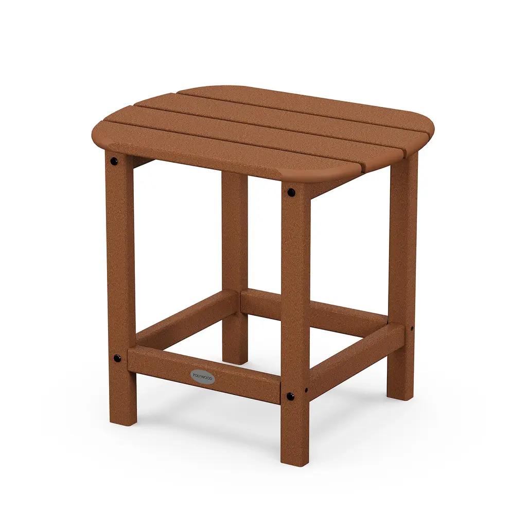 Our POLYWOOD® Adirondack Furniture combines classic style and supreme comfort for a modern twist on a timeless design. This weatherproof furniture is perfect for deck, patio, porch, poolside, beach house, cabin and more – in any climate, any season! Super-durable, eco-friendly POLYWOOD lumber has the look and feel of painted wood without the maintenance and yearly upkeep. POLYWOOD "lumber substitute" is engineered from a proprietary blend of recycled plastics, polyresins and high-density polyethylene that were otherwise landfill-bound. The Side Table is the ultimate accent piece, perfectly sized for drinks and snacks, a book, sunglasses or even a plant! All of these pieces are available in a variety of stunning, fade-resistant colors to mix and match to suit your personal style. POLYWOOD's "Color-Stay Technology" features UV inhibitors and stabilizers to protect from environmental degradation. The light-stable pigments run continuously throughout the material. Leave this Adirondack Furniture out in the yard, on the patio or even by the beach...it resists stains, corrosive substances, insects, fungi, salt spray and other environmental stresses and the color will always remain true. These pieces will not splinter, crack, peel or rot. The marine-grade, commercial-level stainless-steel hardware will not rust. Genuine POLYWOOD lumber cleans easily with soap and water?, ??can be disinfected with a homemade, diluted-bleach mixture and requires no painting, staining or waterproofing. Assembly required; all hardware included. Quality-made in USA.