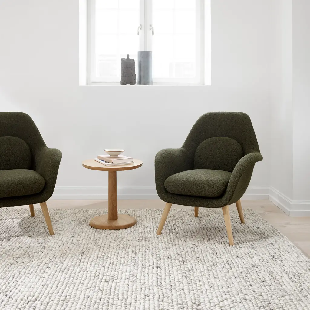 The Pon Side Table from Fredericia Furniture offers an elegant alternative to the traditional coffee table. Crafted from solid wood for a seamless and sophisticated aesthetic, its compact shape and variety of sizes allows for a wealth of visual possibilities. With no distinction between the table top and frame, the top is flat with a subtly domed shape below, mirrored in the base for an artful touch. Highlights