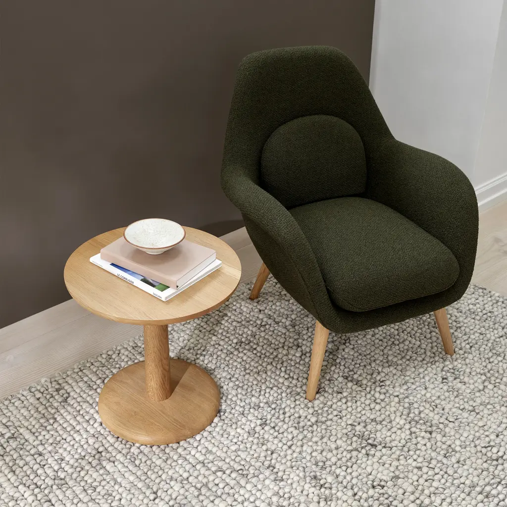 The Pon Side Table from Fredericia Furniture offers an elegant alternative to the traditional coffee table. Crafted from solid wood for a seamless and sophisticated aesthetic, its compact shape and variety of sizes allows for a wealth of visual possibilities. With no distinction between the table top and frame, the top is flat with a subtly domed shape below, mirrored in the base for an artful touch. Highlights