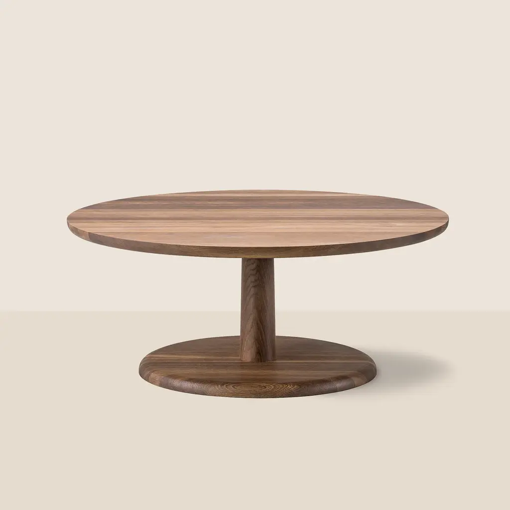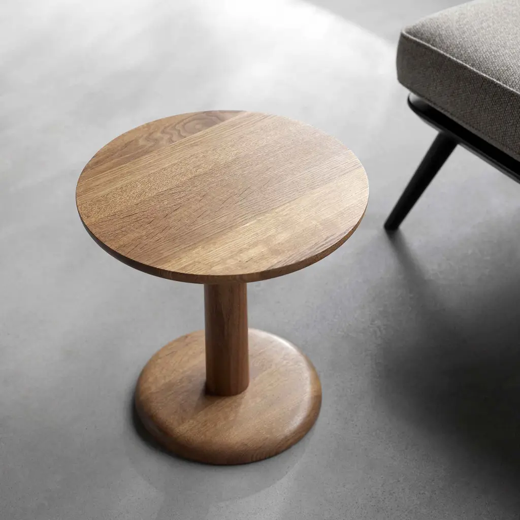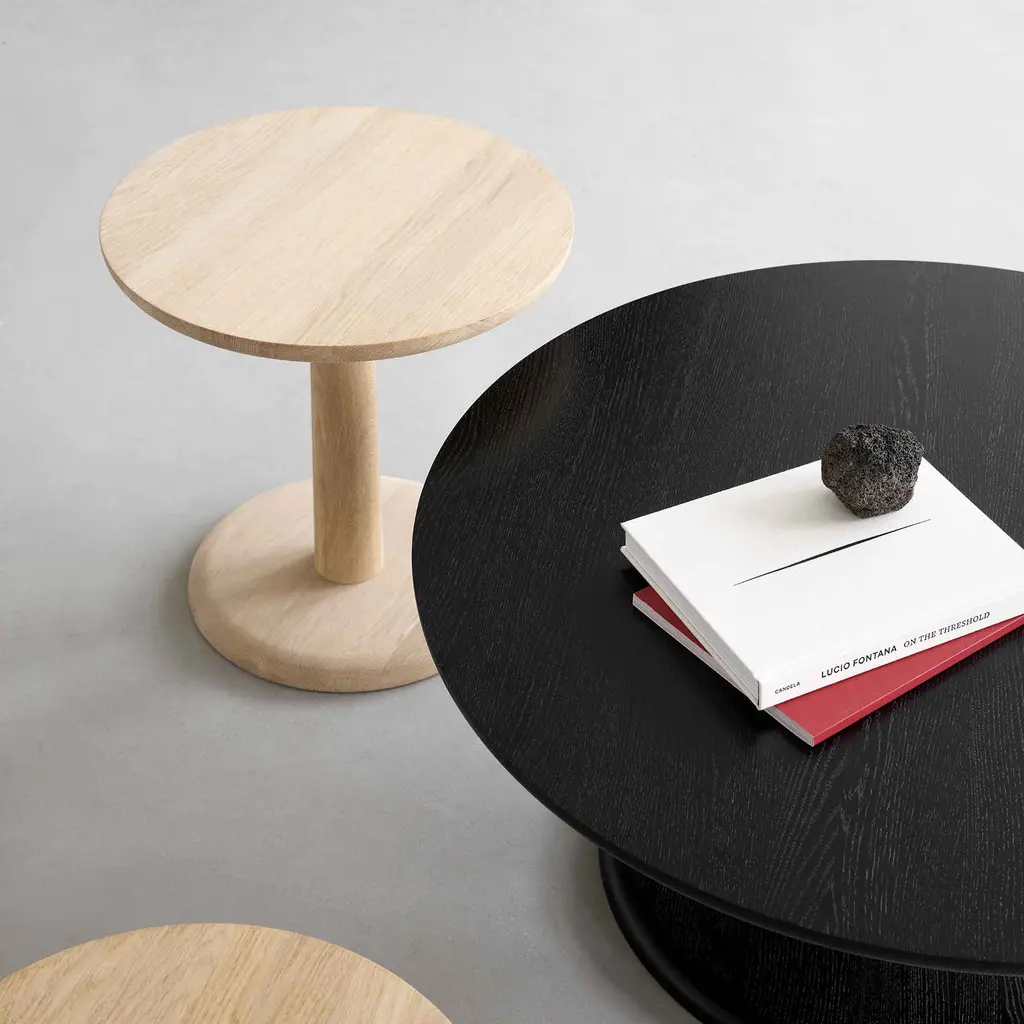 The Pon side table, a creation by British designer Jasper Morrison for Fredericia, redefines the traditional concept of a table through its innovative design and functionality. Morrison, renowned for his focus on simplicity and utility in design, crafts the Pon as a solution to the often oversized and impractical coffee table. He challenges the norms by asking, “Why should a coffee table take up space when it could be several small tables placed as desired?” The Pon side table is circular and modest in size, offering a taller and smaller diameter alternative to its coffee table counterpart. It is available in various heights, allowing for numerous arrangement possibilities. This table is not just an attractive addition to a room but also highly functional, serving perfectly as a surface for a laptop or tablet, books, drinks, or snacks. Whether it stands alone beside a lounge chair or is grouped in a sofa setting, its practicality shines through. Read more Beyond its utility in domestic spaces, the robust and stable design of the Pon table, made entirely of solid oak, renders it suitable for commercial settings like hotel lobbies, art galleries, retail spaces, restaurants, and bars. Its design integrates the top, stem, and base into a single, solid entity, a feature that not only ensures stability but also adds to its aesthetic appeal. This versatility and durability make the Pon side table a practical yet stylish choice for various environments.