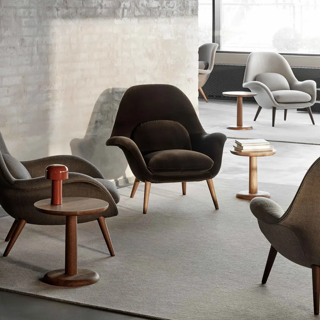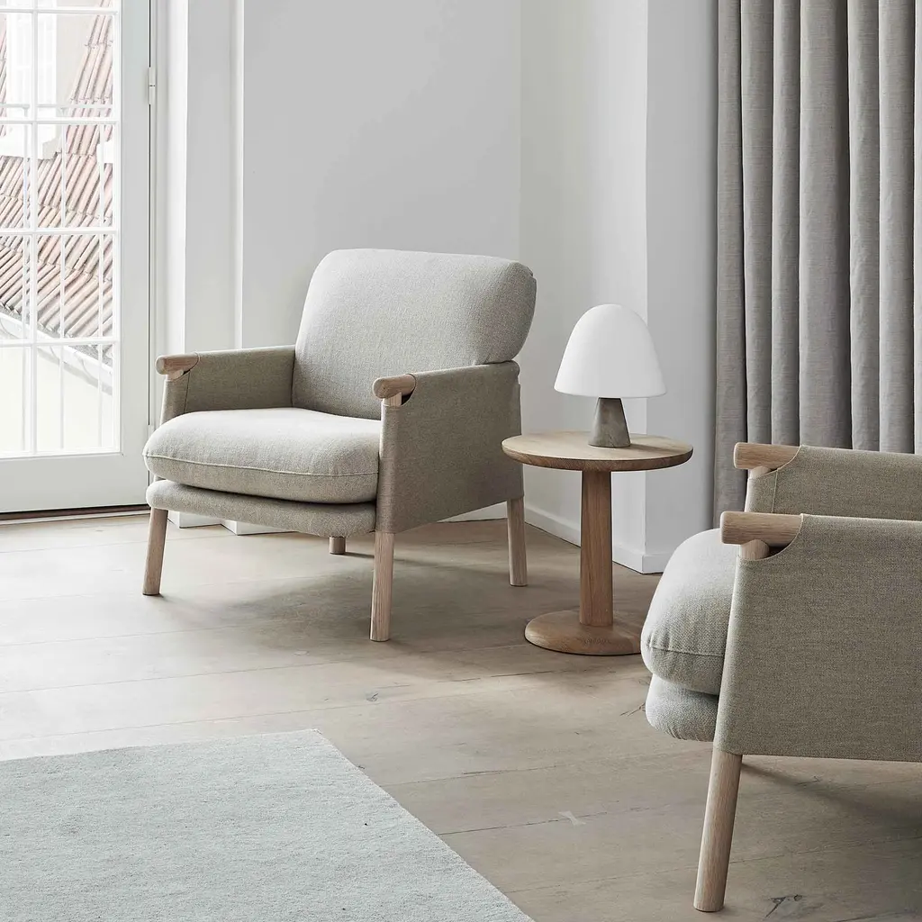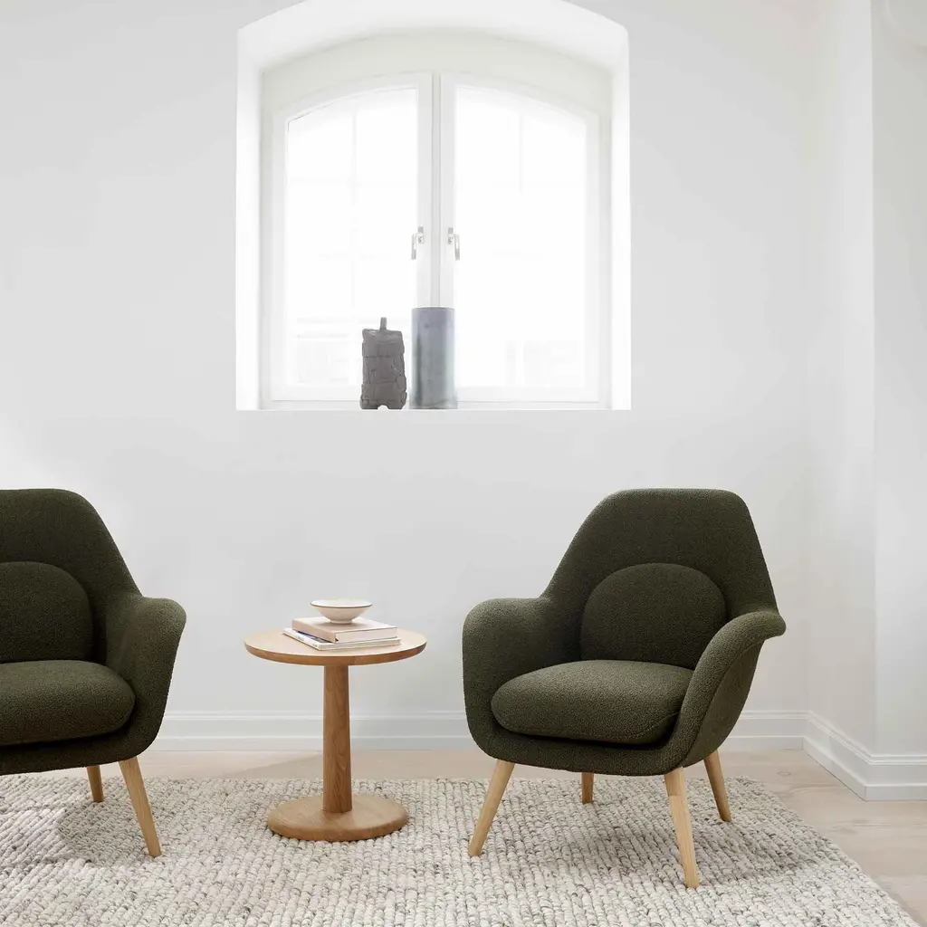 The Pon side table, a creation by British designer Jasper Morrison for Fredericia, redefines the traditional concept of a table through its innovative design and functionality. Morrison, renowned for his focus on simplicity and utility in design, crafts the Pon as a solution to the often oversized and impractical coffee table. He challenges the norms by asking, “Why should a coffee table take up space when it could be several small tables placed as desired?” The Pon side table is circular and modest in size, offering a taller and smaller diameter alternative to its coffee table counterpart. It is available in various heights, allowing for numerous arrangement possibilities. This table is not just an attractive addition to a room but also highly functional, serving perfectly as a surface for a laptop or tablet, books, drinks, or snacks. Whether it stands alone beside a lounge chair or is grouped in a sofa setting, its practicality shines through. Read more Beyond its utility in domestic spaces, the robust and stable design of the Pon table, made entirely of solid oak, renders it suitable for commercial settings like hotel lobbies, art galleries, retail spaces, restaurants, and bars. Its design integrates the top, stem, and base into a single, solid entity, a feature that not only ensures stability but also adds to its aesthetic appeal. This versatility and durability make the Pon side table a practical yet stylish choice for various environments.