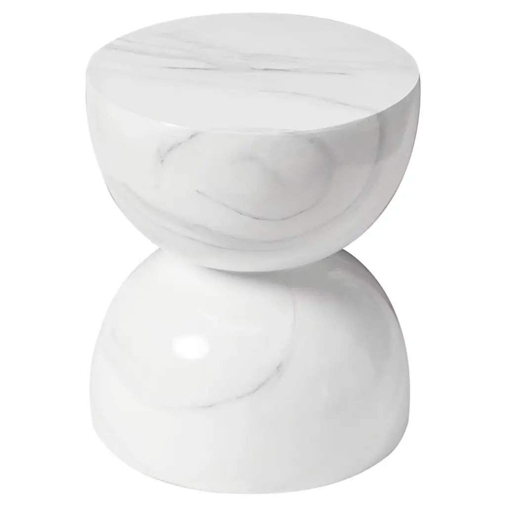 Evoking the expressive designs of 1970s postmodernism, the Ponti side table combines a bold geometric silhouette with the beauty of carved stone. Grounded in a pedestal base that supports a slender top, the dynamic form is marked by a cinched midsection. Tonal variations and rich vein patterning make each piece one of a kind.SHOP THE ENTIRE COLLECTION