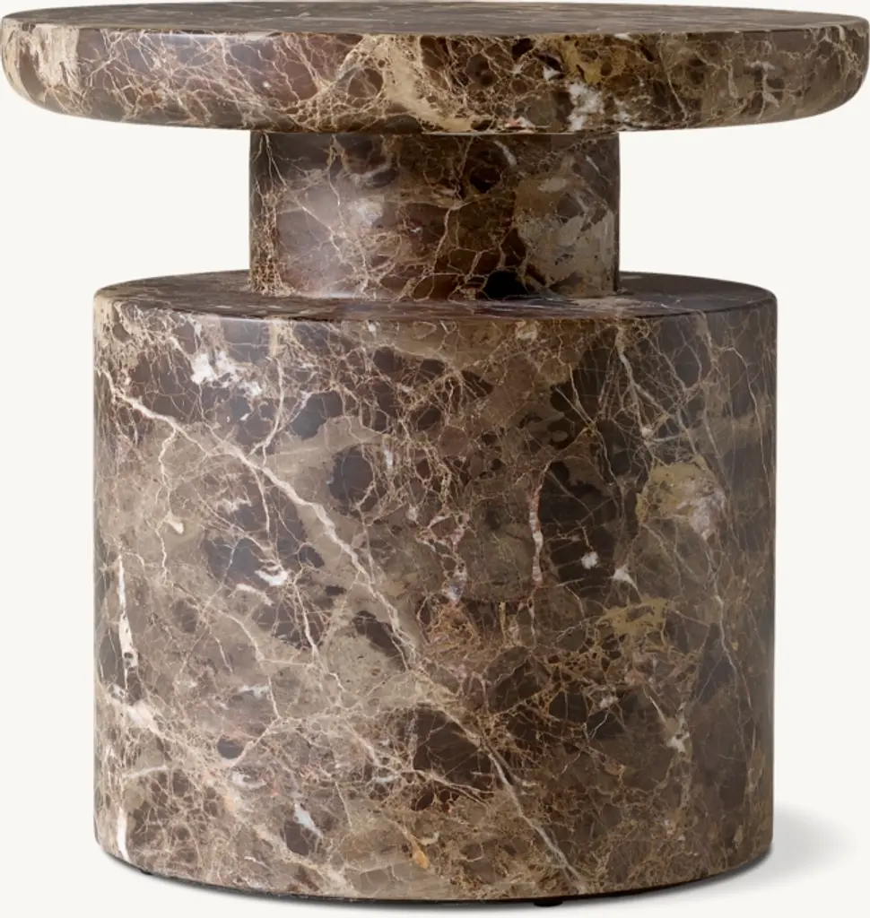 Evoking the expressive designs of 1970s postmodernism, the Ponti side table combines a bold geometric silhouette with the beauty of carved stone. Grounded in a pedestal base that supports a slender top, the dynamic form is marked by a cinched midsection. Tonal variations and rich vein patterning make each piece one of a kind.SHOP THE ENTIRE COLLECTION