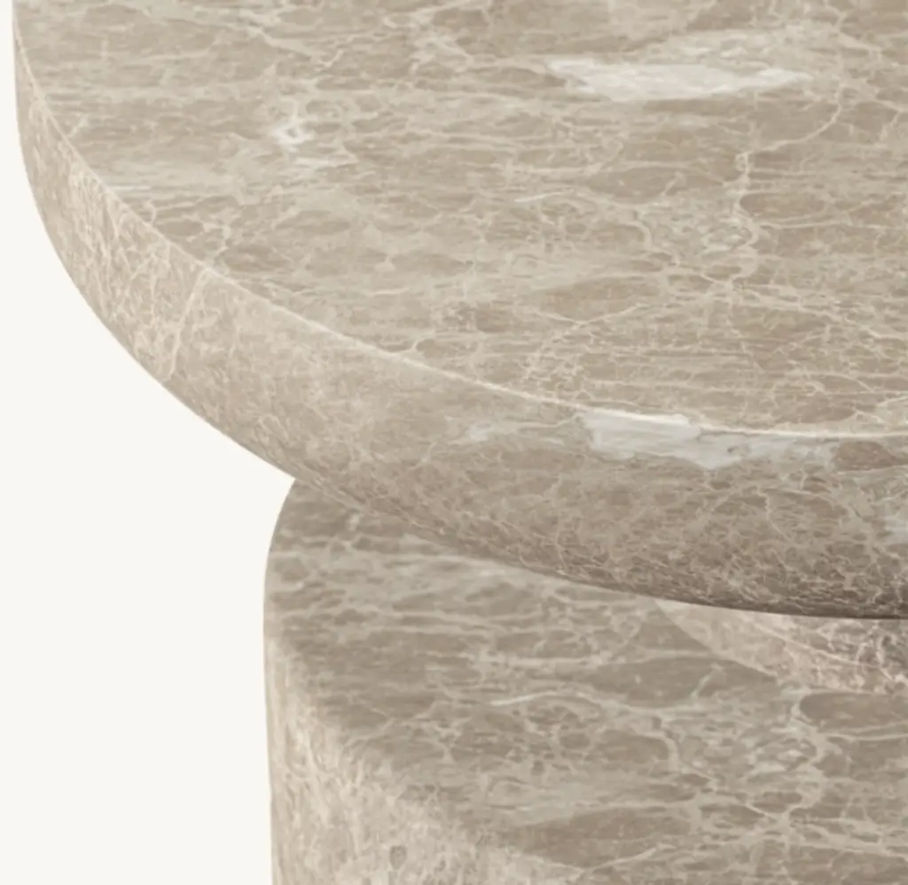 Evoking the expressive designs of 1970s postmodernism, the Ponti side table combines a bold geometric silhouette with the beauty of carved stone. Grounded in a pedestal base that supports a slender top, the dynamic form is marked by a cinched midsection. Tonal variations and rich vein patterning make each piece one of a kind.SHOP THE ENTIRE COLLECTION