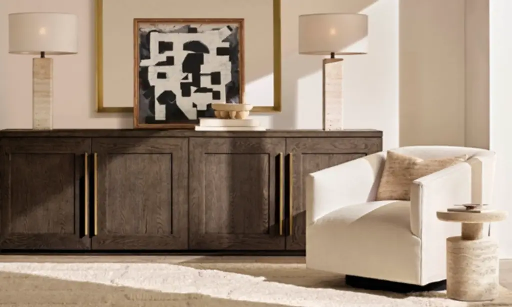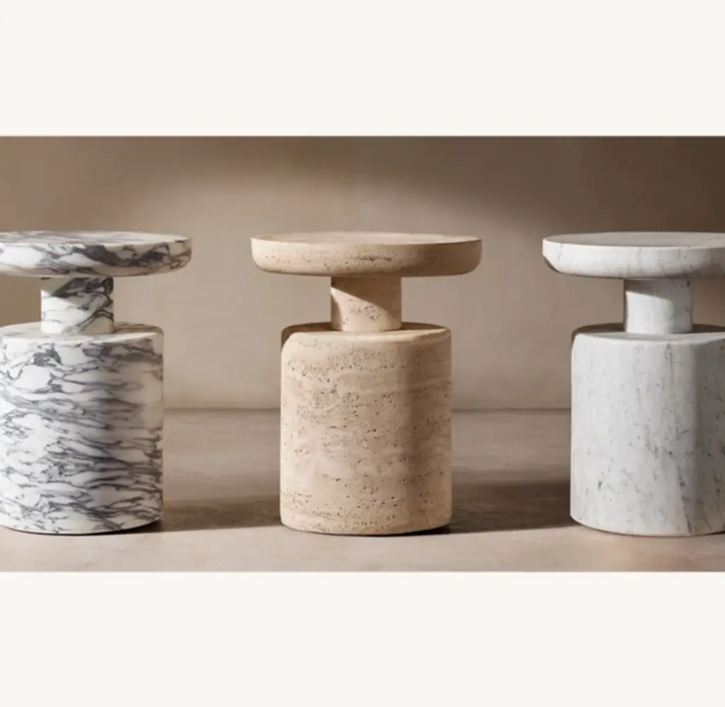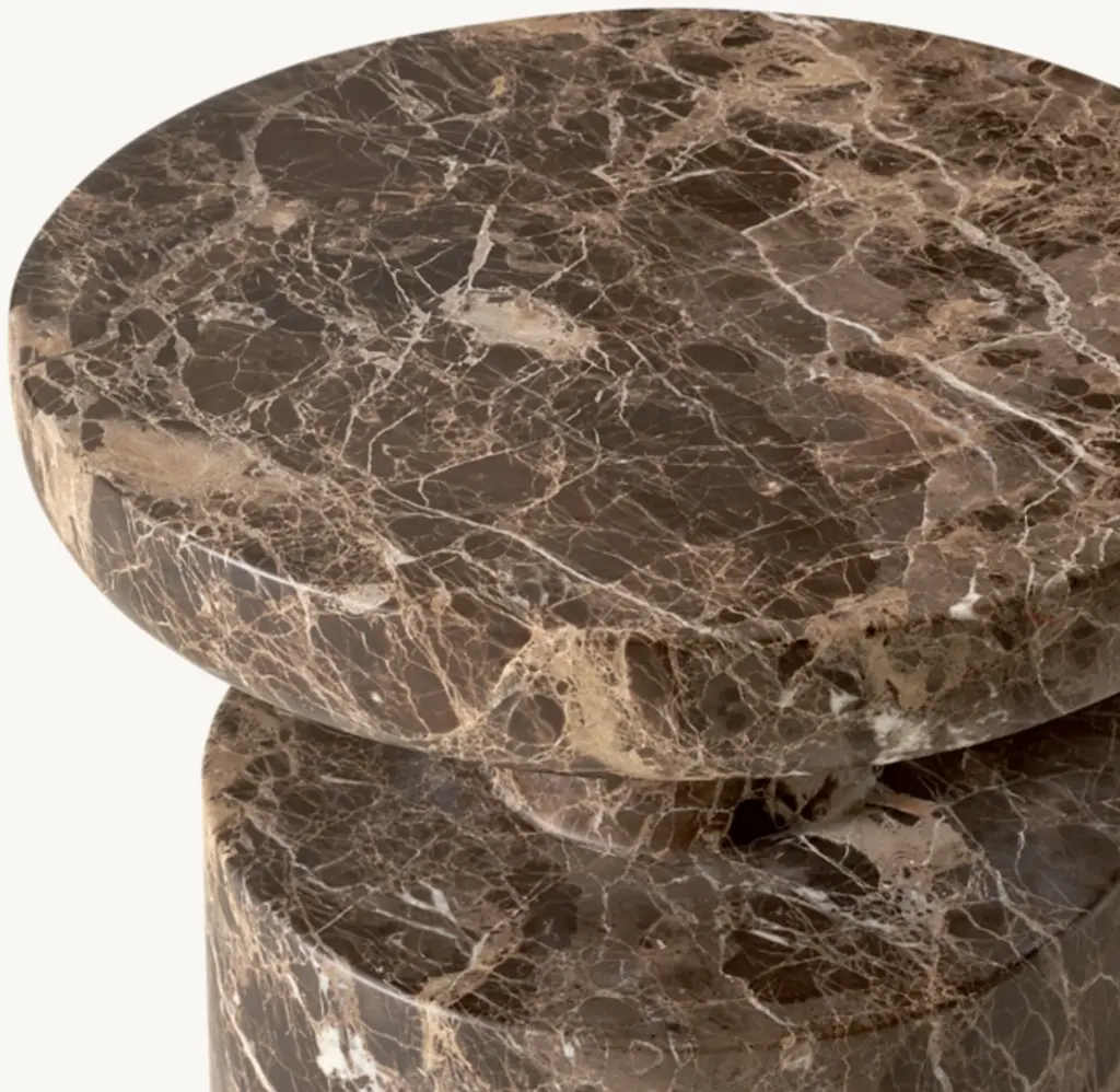 Evoking the expressive designs of 1970s postmodernism, the Ponti table combines a bold geometric silhouette with the beauty of carved stone. Grounded in a pair of pedestal bases that support a slender top, the dynamic form is marked by a cinched midsection. Tonal variations and rich vein patterning make each piece one of a kind. SHOP THE ENTIRE COLLECTION