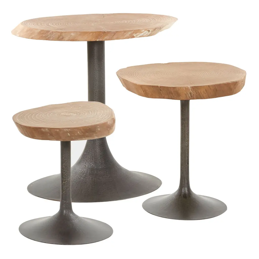 In making our Poppy accent tables, we hunt down elm logs that include interesting knots and burls, so that each table is full of textural details. The hand-forged metal base has two assembly options, for use as a laptop table that can slip under a sofa or as a standard accent table. A one-of-a-kind work of natural art with unique variations in color and grain pattern, its reclaimed-wood construction guarantees that no two pieces are alike.