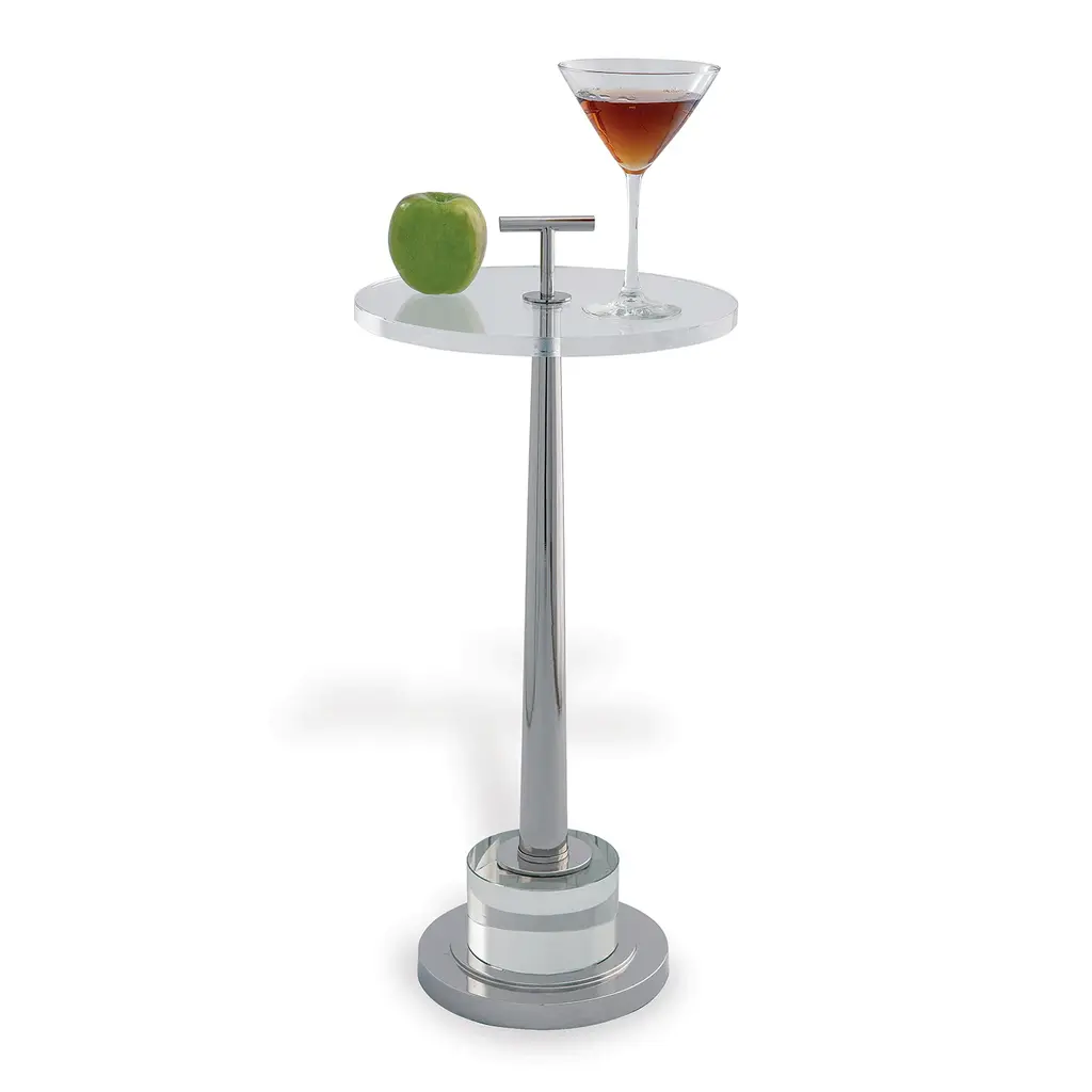 Toronto is our modern tapered turned accent table. Available in polished nickel and crystal, this table is as functional as it is beautiful! We love the T shaped center pull which makes it so easy to move the table where the action is. Scaled at 12" diameter, the table is perfect for a coffee or your favorite adult beverage. Size: 25.5"H x 12" Diameter Free shipping in the U.S. and Canada