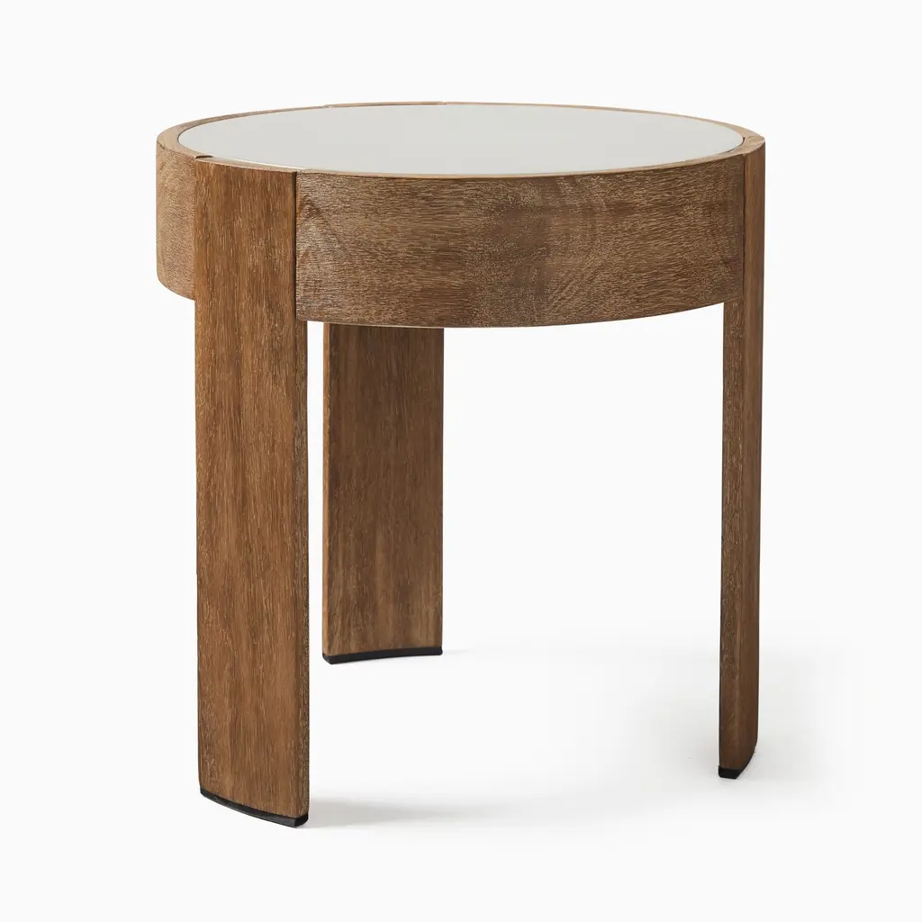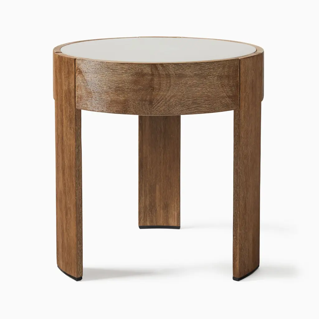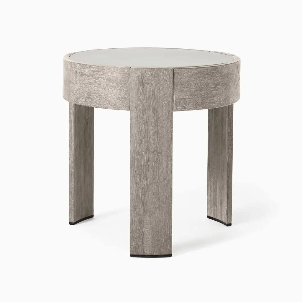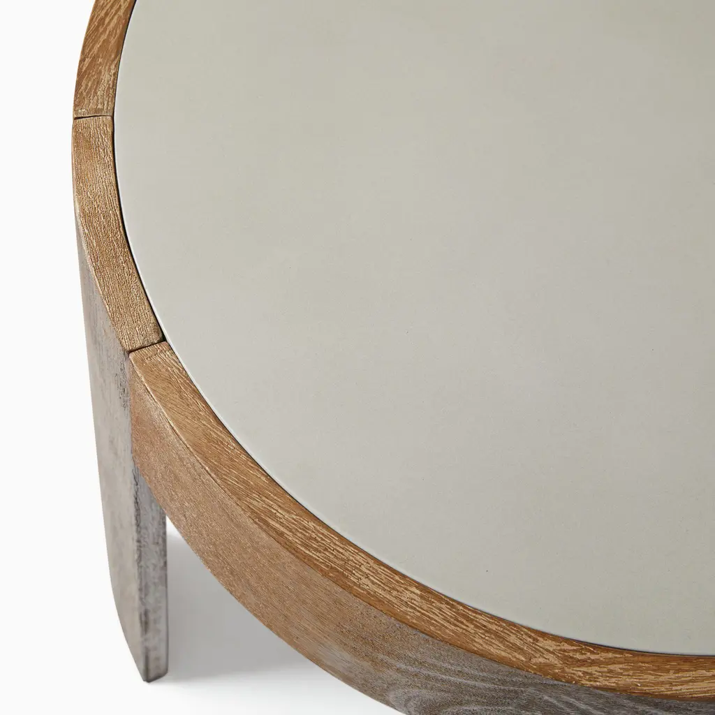 Its elevated, coastal look. Crafted of solid, sustainably sourced wood. Perfect for perching drinks and snacks. The smooth concrete top makes clean-up a breeze.