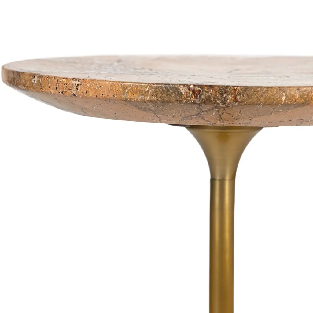 Meet the Posie Drink Table – a vision of timeless elegance and sophistication. This drink table features an antique brass-finished stem that adds a touch of vintage charm.