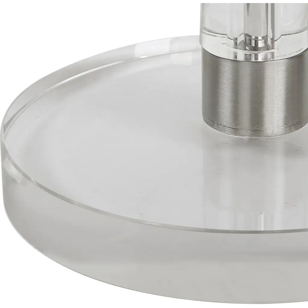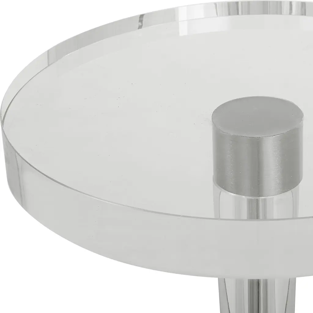 Crafted Almost Entirely From Crystal, This Drink Table Adds An Elegant Touch To Any Space. The Tapered Post Is Accented With Iron Details Finished In Brushed Nickel.