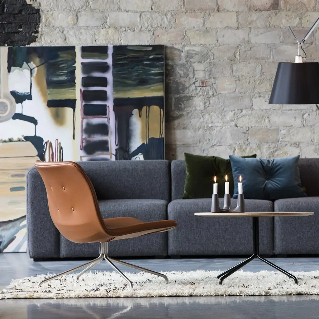 Primum Lounge Table is a stylish, little table with a minimalistic and circular table top and slightly curved legs. The small lounge table is designed to accompany Primum Lounge Chair as a coffee table or side table in private homes or as lounge table in public settings. The lounge table is made in Denmark and available with table top in oak veneer or black linoleum.