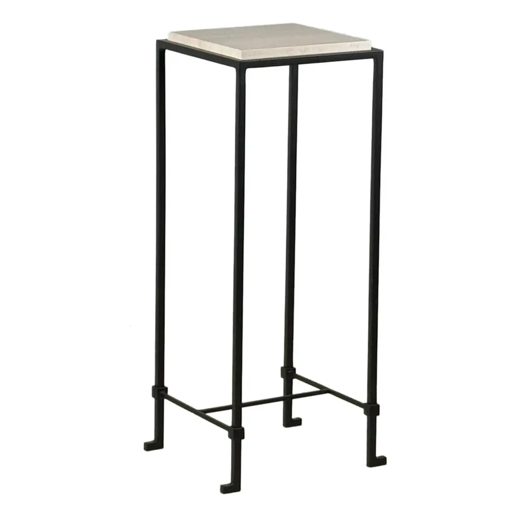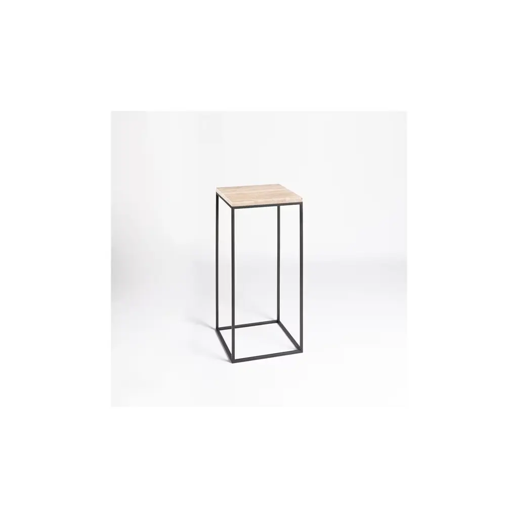 A testament to minimalist design, this exceptional side table will effortlessly adorn a contemporary interior with its clean and essential lines. Fashioned of gray-lacquered iron, the purely geometrical base elegantly sustains a square top in travertine marble. Customizable in marble type and metal finish, please ask the Concierge for options.