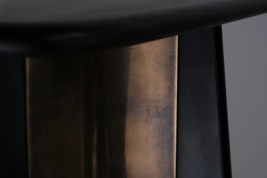 A table inspired by the sweeping curves of a ship's propeller blades and the art-deco golden age of the ocean liner.Pairing blackened steel and etched brass with bullnosed oak, Propeller is a fusion of the tactile and the structural. It pays homage to the shipwrights, platers and joiners who constructed those grand vessels. Available as a side table or as a console table and handmade to order in our workshop in Northern England.Measures: 85cm (length) x 40cm (width) x 80cm (height).Custom sizes available.Made to order in 12 weeks.Price excludes VAT.