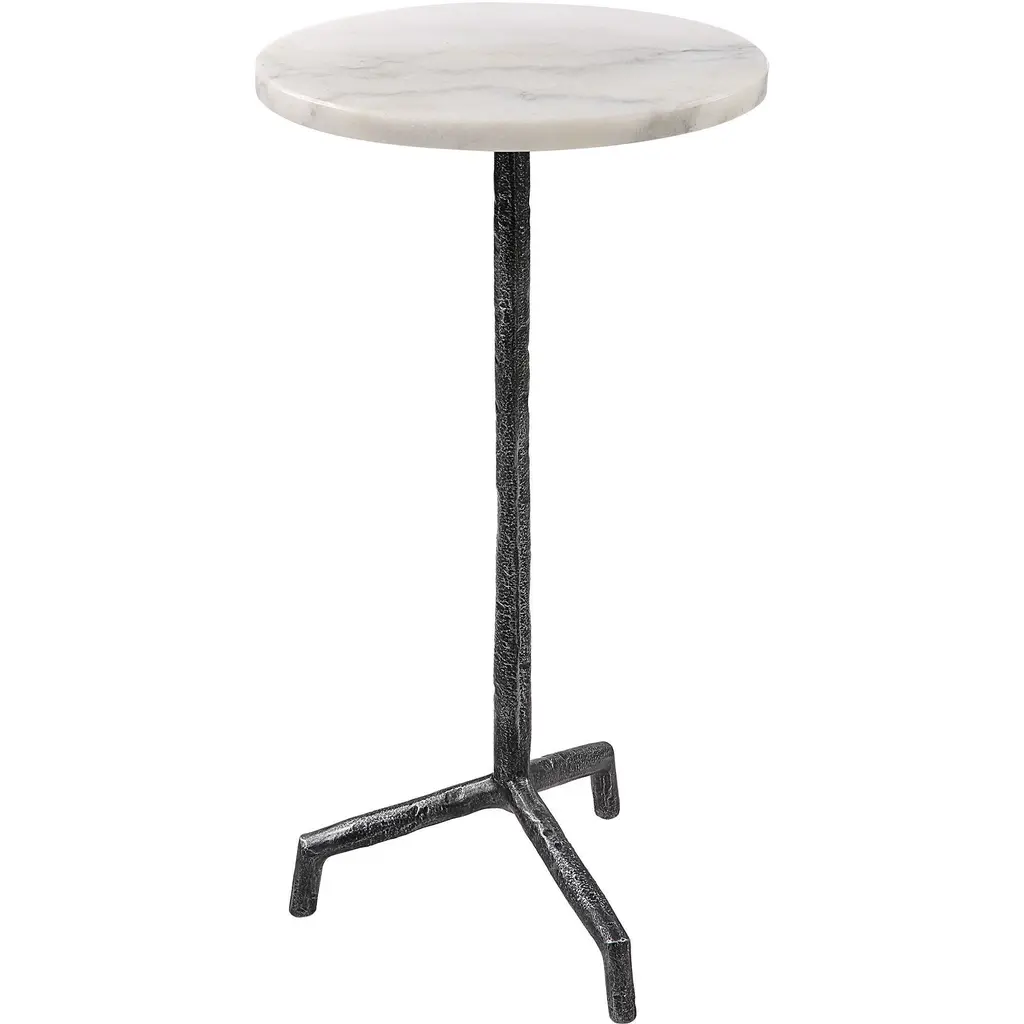 This Petite Drink Table Is The Perfect Resting Place For Your Beverage Or Favorite Novel. The Heavily Textured Iron Base Is Finished In A Rustic Aged Black And Topped With Naturally Veined White Marble.