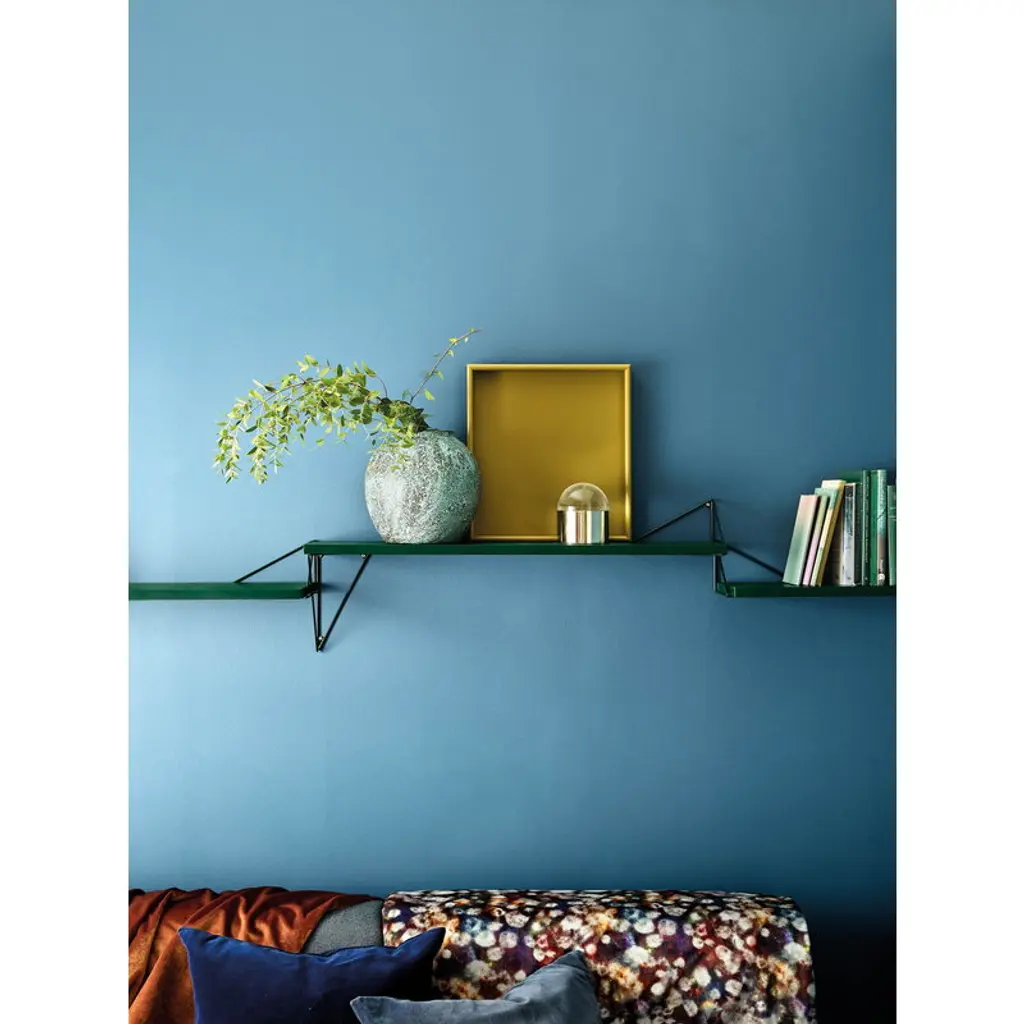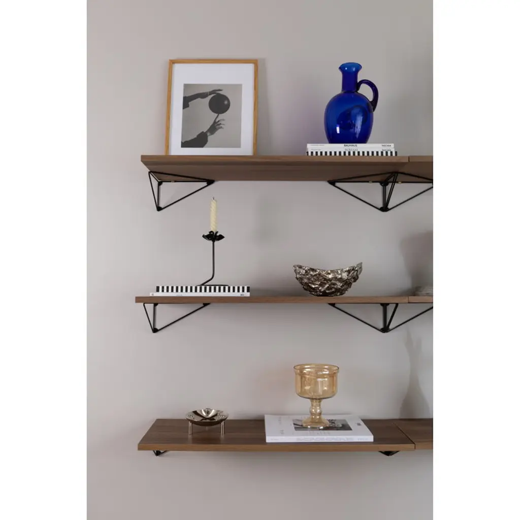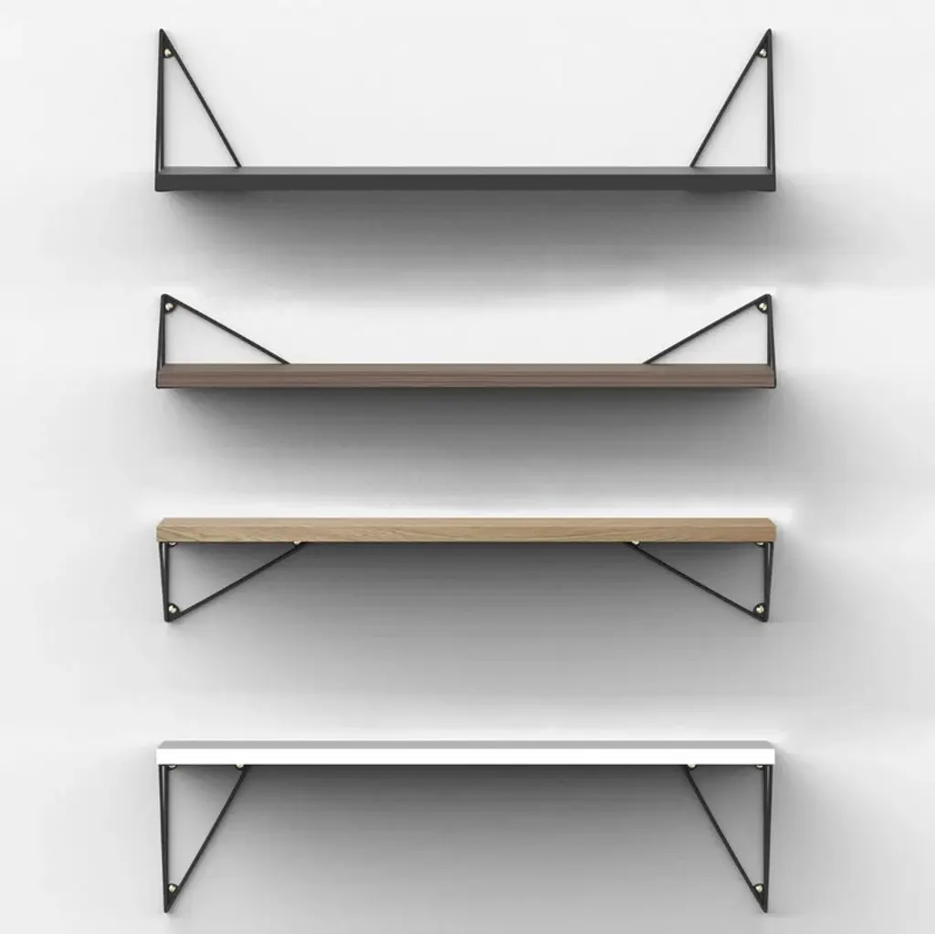 Pythagoras brackets by the Swedish brand Maze are part of a unique shelving system which combines the preciseness of mathematics with the creative possibilities of design. Designed by Gustav Rosén, the Pythagoras collection was inspired by the Pythagoras' triangle theorem, making a triangle the base and most essential element of the shelving system. Pythagoras wall brackets, shelves, and drawers give you the freedom to create shelves of various sizes, colors, and shapes in any space. Use them to build a single wall shelf, bedside table, corner shelf, set of kitchen drawers, or a large shelving module covering an entire wall. The wall brackets can be mounted either below or above the shelf or drawer in four different positions, and their airy design leaves room for blank space as well. Play, experiment, and create the perfect shelf for your own needs! The wall brackets are designed to fit the shelves and drawers of the Pythagoras collection, but it is possible to use them with other shelves as well – the recommended shelf dimensions are 31.5 x 7.87 x 0.75 x 0 in (800 x 200 x 19 x mm. mm). The brackets are made of 100% recycled metal.