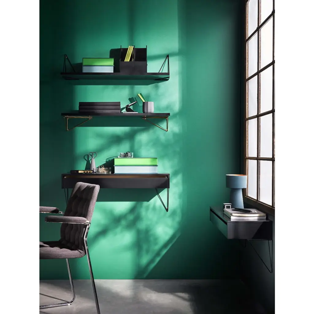 The Pythagoras drawer by the Swedish brand Maze is part of a unique shelving system which combines the preciseness of mathematics with the creative possibilities of design. Designed by Gustav Rosén, the Pythagoras collection was inspired by the Pythagoras' triangle theorem, making a triangle the base and most essential element of the shelving system. Pythagoras wall brackets, shelves, and drawers give you the freedom to create shelves of various sizes, colors and shapes in any space. Use them to build a single wall shelf, bedside table, corner shelf, set of kitchen drawers, or a large shelving module covering an entire wall. The wall brackets can be mounted either below or above the shelf or drawer in four different positions, and their airy design leaves room for blank space as well. Play, experiment, and create the perfect shelf for your own needs!
