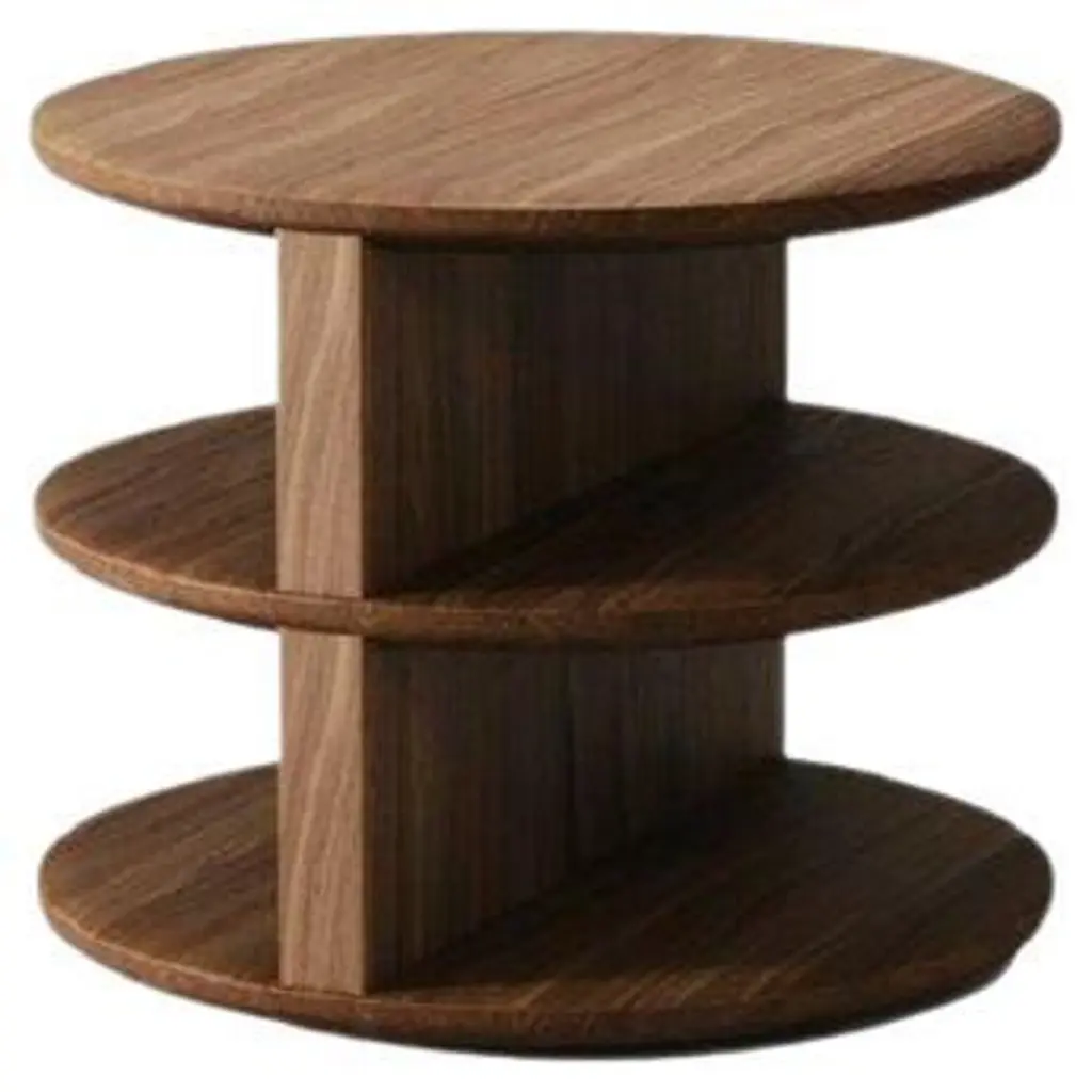 Like a toy put together by a very clever child, this charmingly primitive side table has been expertly handcrafted of walnut and hand-finished to celebrate the woodÕs natural stain. Three variegated shelves provide intriguing display options.