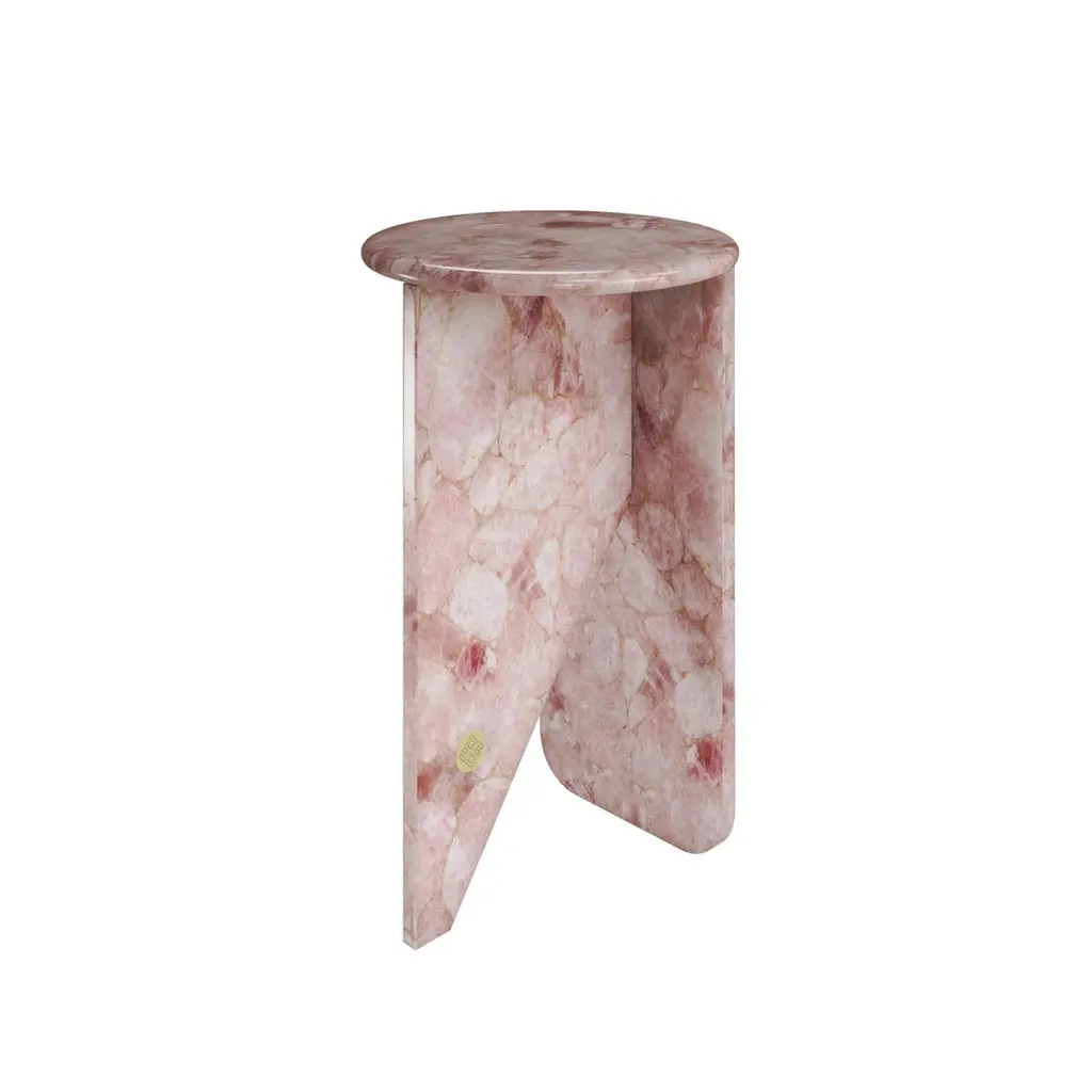 Quartz Eli baby love side table hand sculpted by Element & Co.Dimensions: 35 Ø x 60 cmMaterials: Rose quartz, precious stone Elisabeth Love is totally sculpted in rose quartz. Its curved lines and circular shape turn this piece into a sculpture that softens the atmosphere and provides harmony with a sensual color.elementandco is a multidisciplinary studio based in Madrid, created by French-Spanish designer Sasha Sanchez and Taiwanese-Spanish designer Bryan Ou Yang. The creators of the firm share their fascination for bespoke furniture, textures design and a long experience in the field of luxury, Fine jewelry, interior design and architecture.Bryan Ou Yang, graduated of Escola Massana. Art and Design School in Barcelona. Sasha Sanchez graduated in International Business in Sorbonne Université of Paris and master degree in Elisava, Barcelona School of design. Both share a multicultural profile and a creative philosophy that is summarised in a know-how that distinguishes them.The studio is constantly redefining the boundary of design, from interior design to furniture design. Not in an abstract way but realistically by creating objects, developing materials and textures and defining new design identities.The characteristics of elementandco design are translucency, emotional coloring, flow of energies through attractive forms and precious stones. It is only when you come to use the objects or encounter the space that you realize the designs are not just about superficial beauty but that considerable thought as also gone into their functionality. Design originates from a story board with people as the central focus, then incorporates an element of discovery and unpredictability into the design. Each project design is like a perfume with the first, the second and the third note. At first the design seems cool and abstract, but when you interact with it, something magic unexpected happens... a smile appears on your face and finally the more you use it the more you feel attached to it.