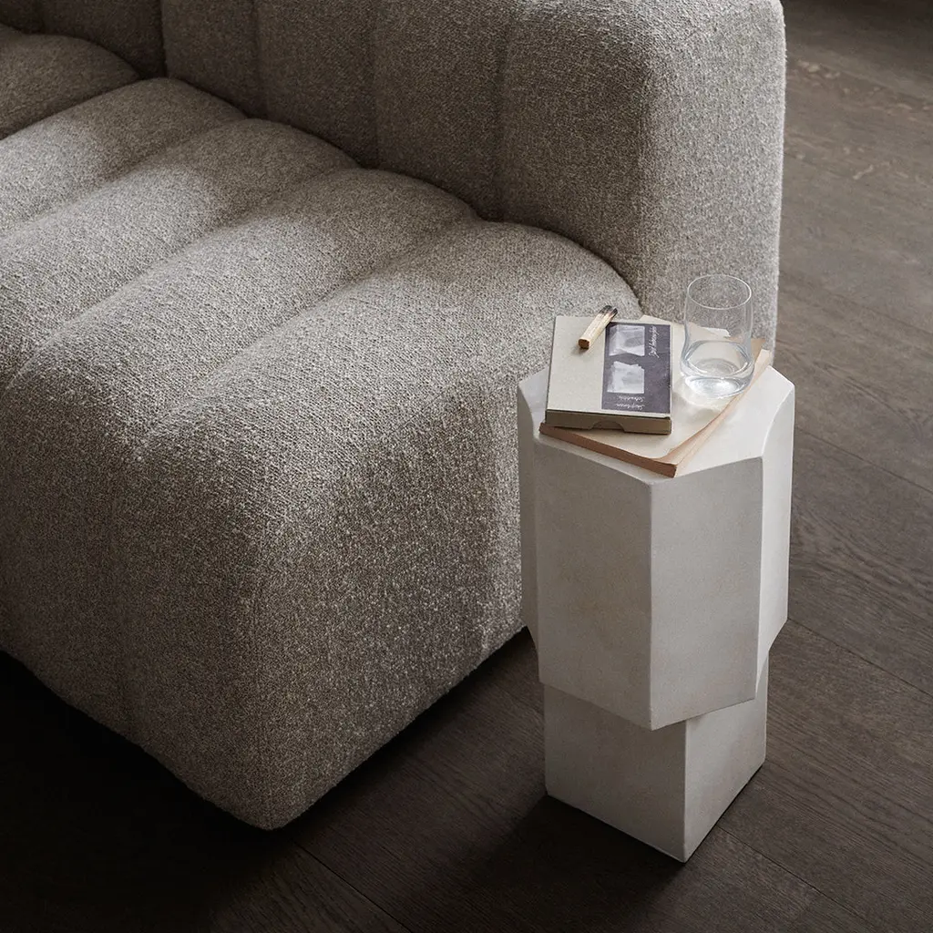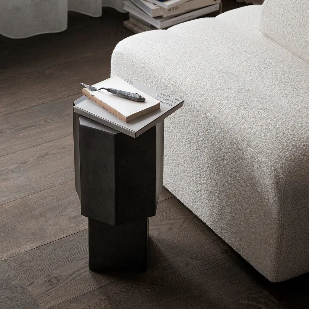 Inspired by the natural crystal shape of the Quartz stone,Quartz changes its appearance when seen from different angles. Quartz is a versatile stone-like object, suitable as a side table, podium or sculpture. Quartz is cast in lightweight fiber concrete with a unique and tactile surface texture in Earth color. It also available in Chalk, Mineral & Maroon colors.