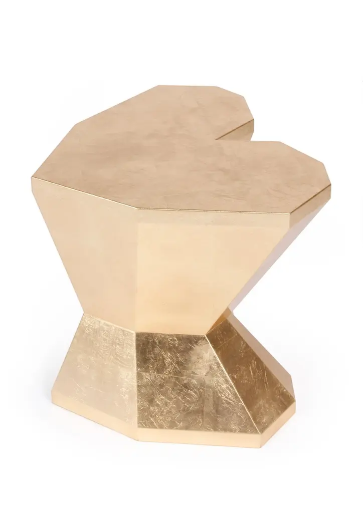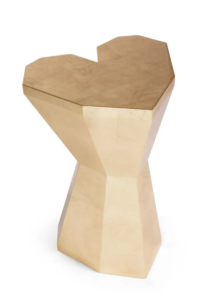Queen heart side table by Royal StrangerDimensions: 65 x 45 x 40 cmAlso available in Short: 50 x 50 x 60 cmMaterials: Glossy varnish on the gold leafed wood structure.This royal and romantic pair of side tables makes you wander to another dimension. A luxurious duo covered in gold leaf with a glossy varnish finish. Royal Stranger is an exclusive furniture brand determined to bring you the best unique pieces of art and design.Fusing design, art and the best craftsmanship, they strive to deliver the best state of the handmade art furniture. The design team works every day to create meaningful products that represent values such as passion, function, aesthetics and know-how. Values that are meant to represent Royal Stranger’s DNA. This dedication is present at all stages of production and the combination of craftsmanship and innovative design contributes toour final purpose: to produce certified high-quality products, made with passion and expertise and using royal materials such as gold leaf, rich woods and high quality lacquers.It was in 2013, as an architects, that Sofia Santos & Rui Santos started to push the boundaries of innovation in several retail design concepts for some of the best stores in Portugal. This will has always been present in their work, and that’s how the brand was born.