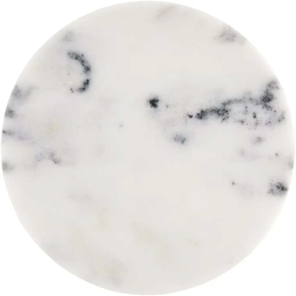 Created in three sections, the Quince White Marble Accent Table is turned like a wood table would be to reveal the personality of the natural stone. The petite white marble accent table has spots and veining in dark and light gray that flow in mysterious patterns along its surface. These attributes of the natural material will vary significantly from table to table. The personable small accent table reads like a sophisticated chess piece that exudes checkmate style.