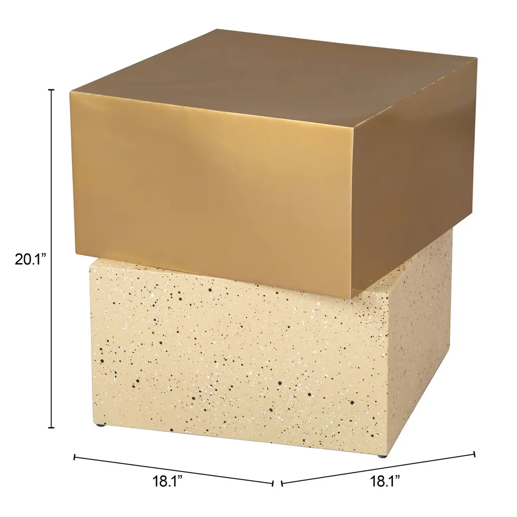 Quinlan Gold Metal And Faux Terrazzo Block Side Table