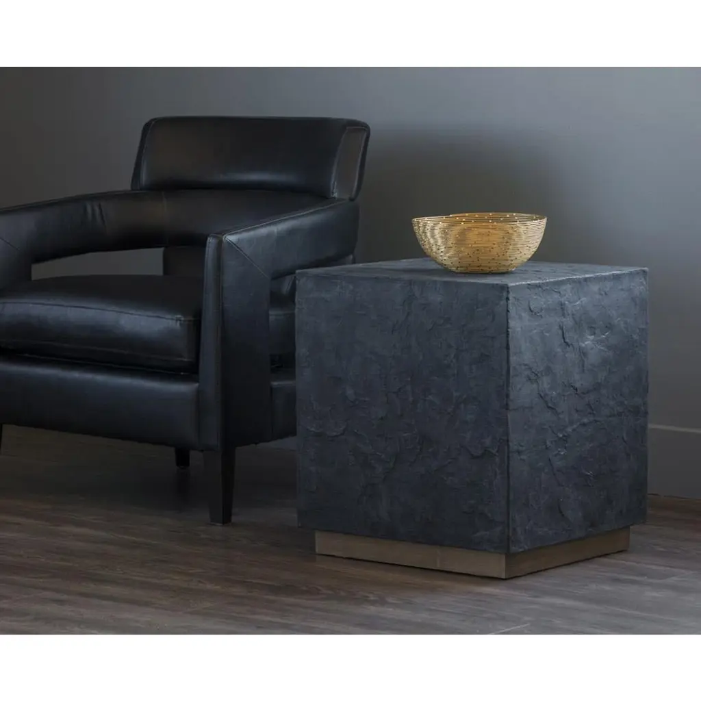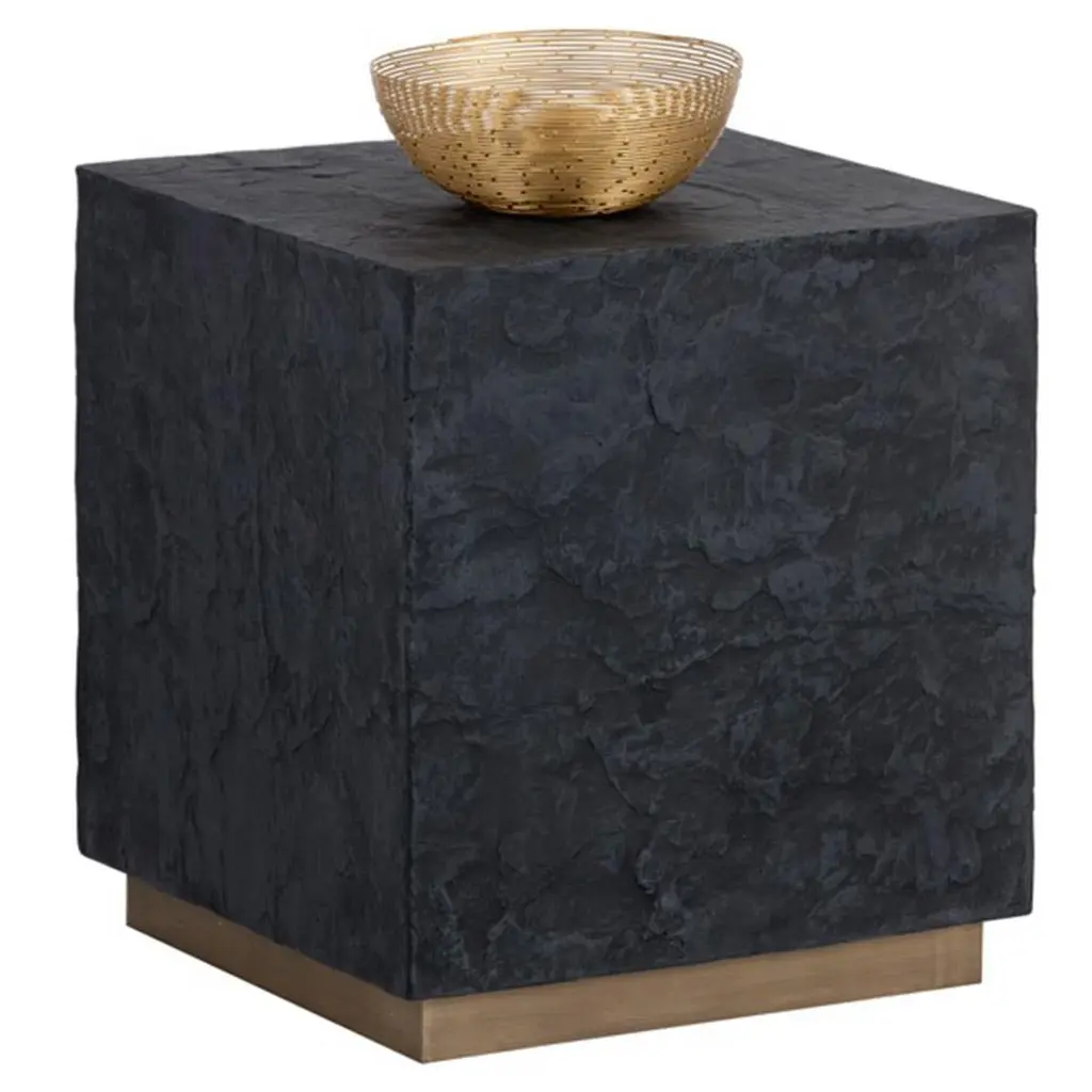 Quintana Industrial Black Textured Concrete Antique Brass Base Block End Table