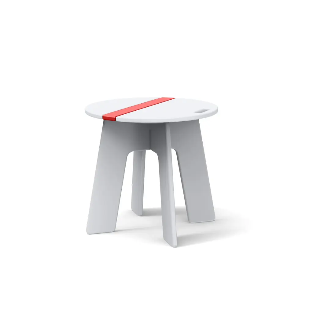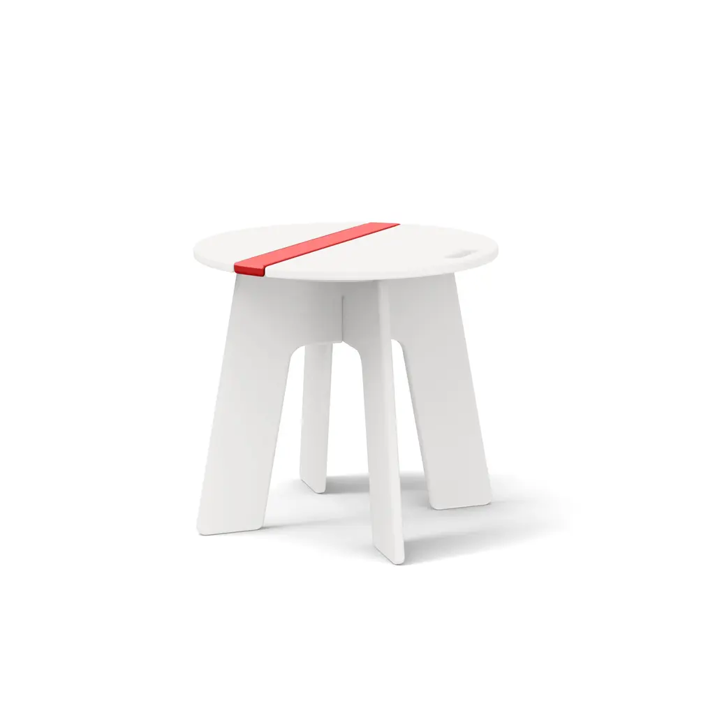 The Racer Side Car Table is part of the Racer Collection designed by Eric Pfeiffer with Loll. The round outdoor side table ties the collection together and will help to make pit stops last as long as necessary. Styled with convenient handles and a sporty stripe, this modern end table is made in the U.S.A. from 100 percent recycled plastic. No Maintenance/Weatherproof: Features No Maintenance/Weatherproof: UV INFORMATION: RICHLITE: LOW-IMPACT MANUFACTURING: