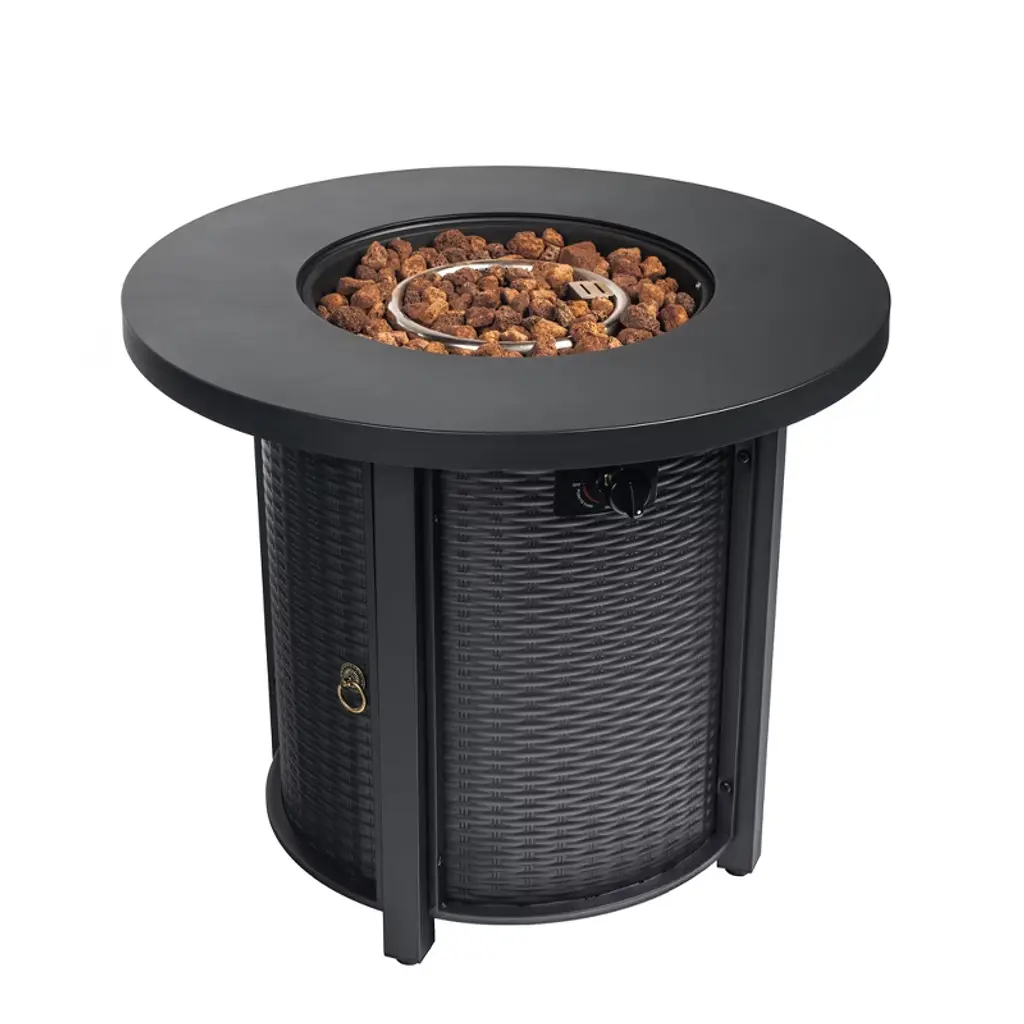 Racxily 30" Propane Gas Fire Pit Table, 50000 Btu Round Steel Fire Pit For Outside Patio Deck Garden Courtyard-black