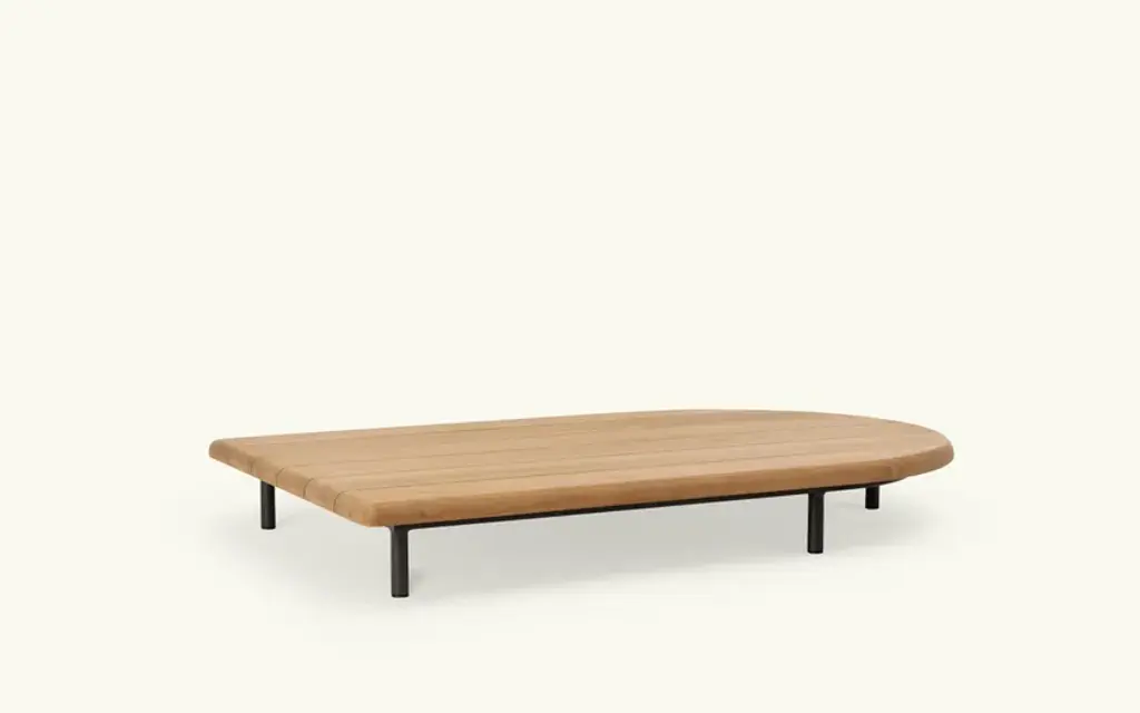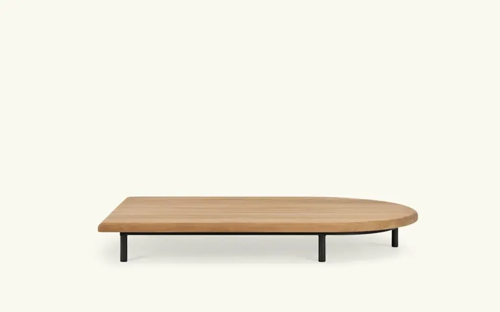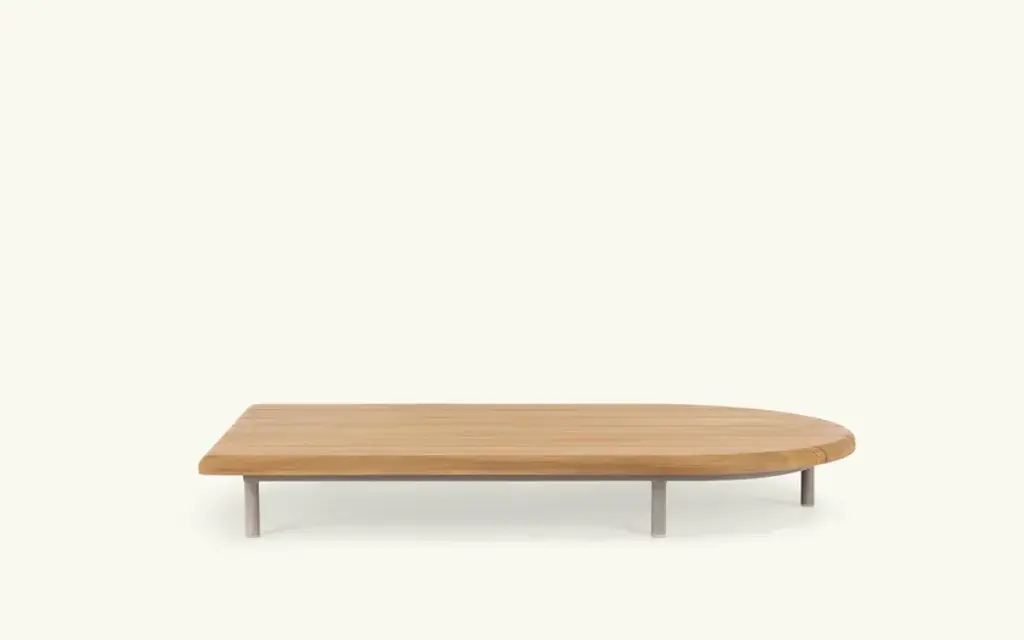 Rada is a low coffee table with metal structure and wooden slat top: can be used as an addition to the sofa with or without square or round cushion.Colors:6000040 - Rada Coffee table with anthracite legs6000041 - Rada Coffee table with taupe legsA living room without walls: the Rada collection reinvents the outdoor space as if it were a room in the house. Elegant and cozy. Rada draws The name from the natural cove that gives shelter to ships and echoes its cozy shapes. The sofa, an iconic element of the collection, through its modular design offers the possibility of configuring the outdoor space in different hospitality situations, like a real living area.The collection consists of lounge area, dining area and loungers. The whole line is generous in character, which is evident in the size, depth and softness of the upholstery. Different combinations of materials: teak base and tops, aluminum frame softened by a weave in the back of the sofas and thin padding in the dining area seats.