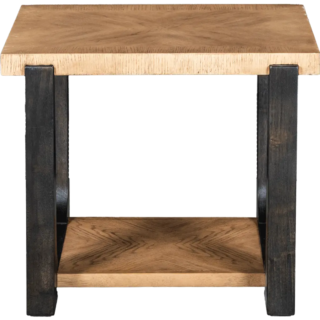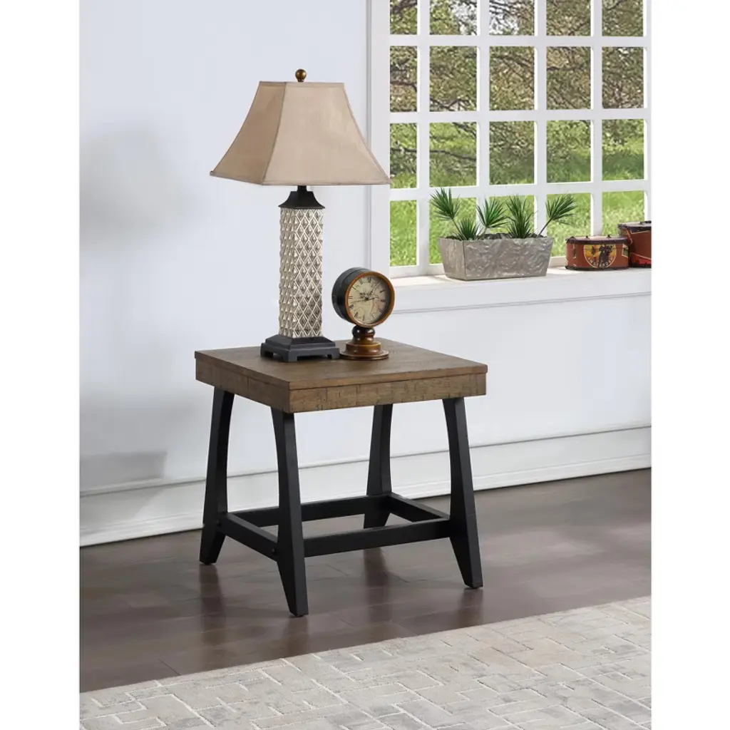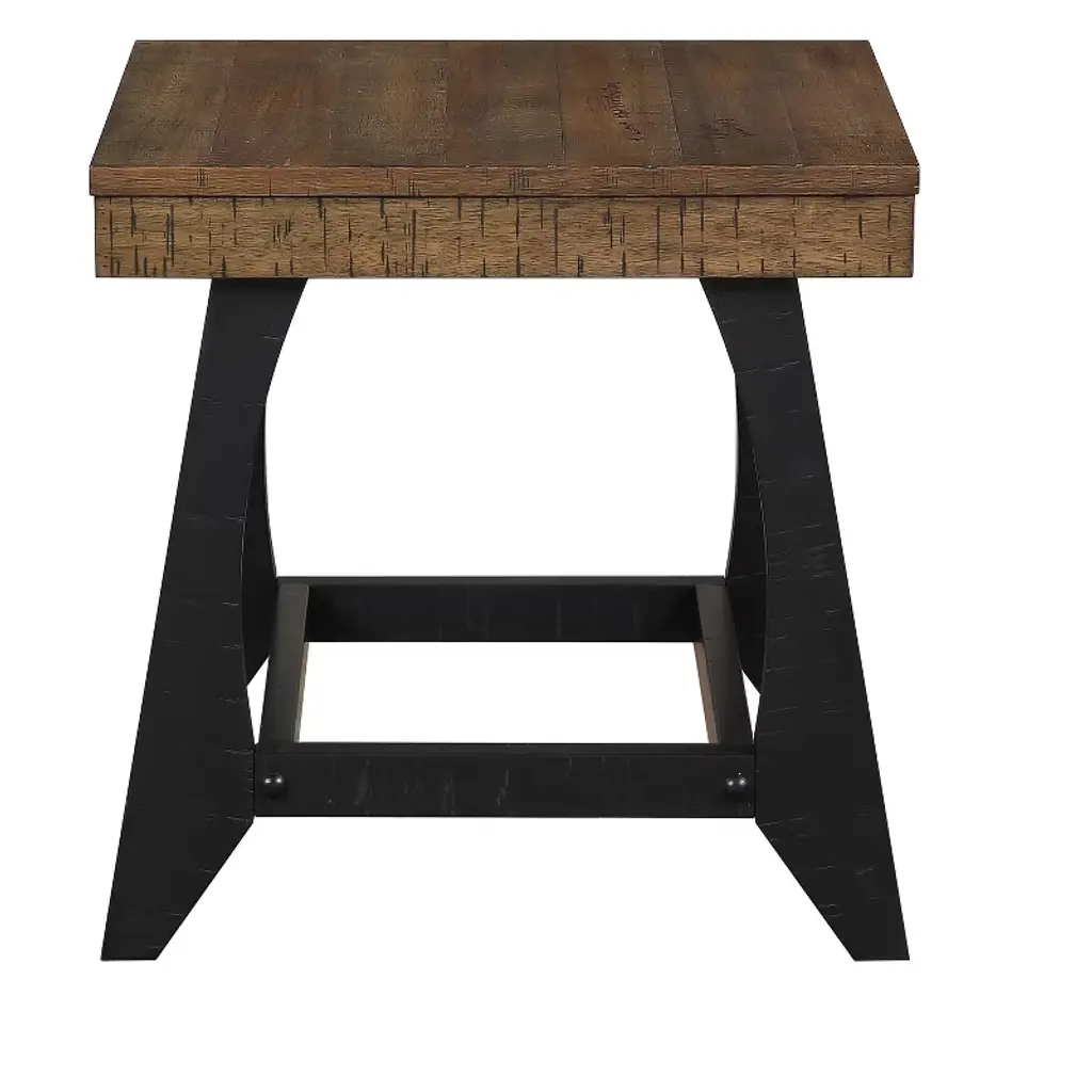 Plank effect top with pin-mark and saw-rasp distressing for a casual, heirloom feelConstructed of hardwood solids, veneers, and engineered hardwoodsStyling details include plank effect top with pin-mark and saw-rasp distressing for a casual, heirloom feelStretchers add strength to the frame of the End TablePart of the Ralston collection and can be paired with the Ralston Lift-Top Cocktail TableCaramel and ebony finish