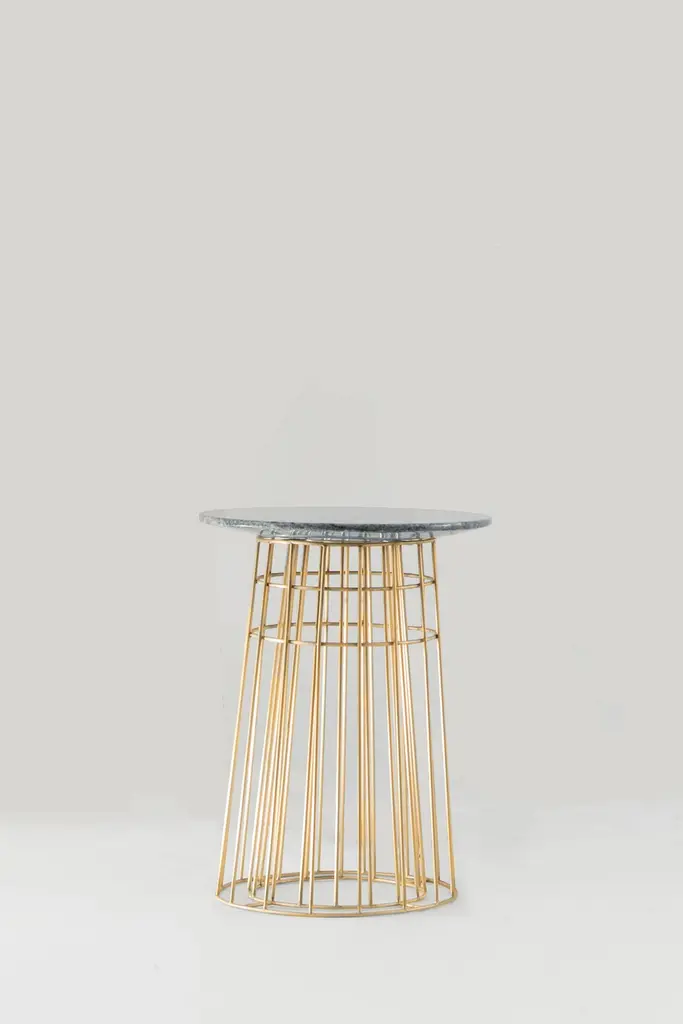 A contemporary delicate piece of artwork in massive Brass and Brazilian granite Stone. The object was exposed in São Paulo and Paris and was selected to appear in fashion and design reviews as Casa Vogue.It can be used alone as a side table or compose a central original coffee table when used with others.This object was used in the designer's own home, presenting signs of age in its structure.In order to maintain its actual aspect, the stone top can be easily washed with soft soap and brushes.
