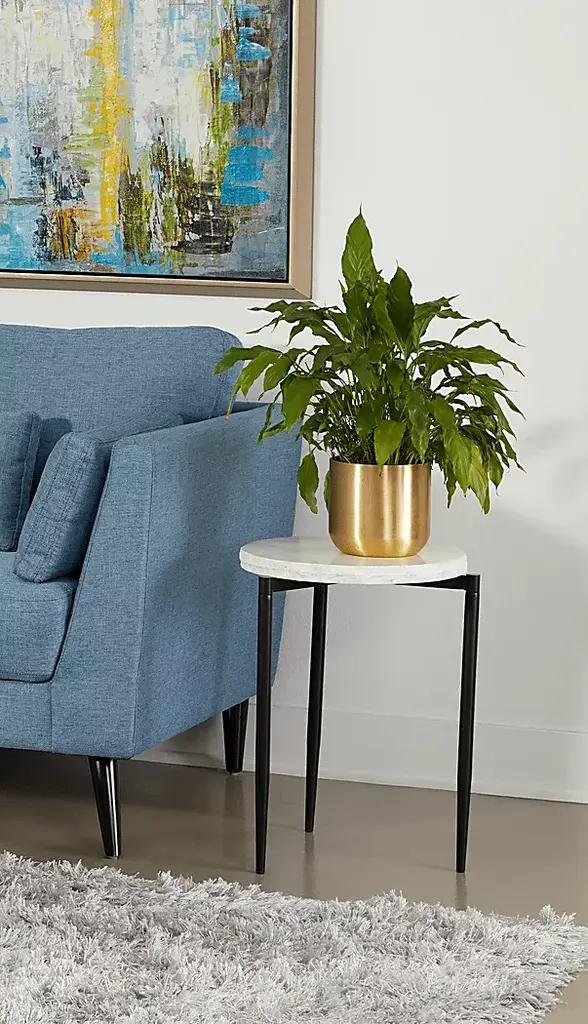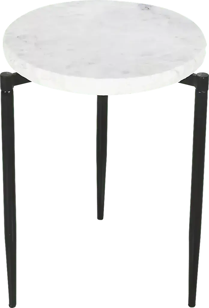 This exquisite Randerson accent table is the perfect addition to any room. Featuring thin iron legs that taper to elegant points, this table creates a sturdy foundation for the natural sourced white marble top. The rough cut edges of the marble give it a natural stone cut feel, creating a beautiful combination that will enhance the beauty of any space. Customer assembly is required.