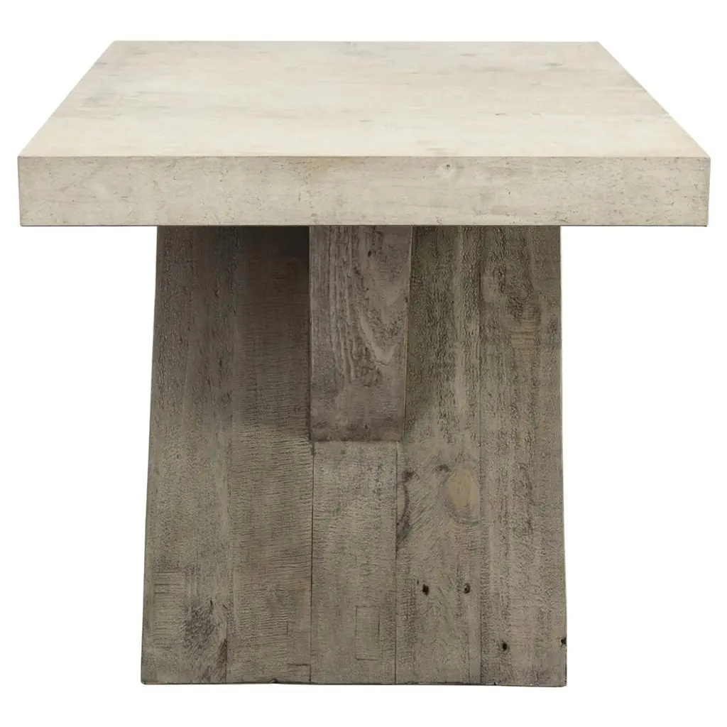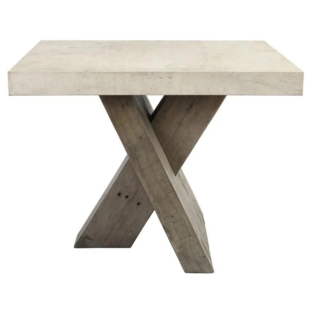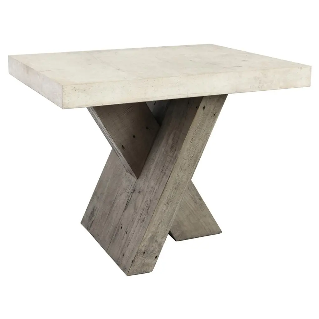 Randy Rustic Lodge White Concrete Top Brown Wood Legs Rectangular End Table