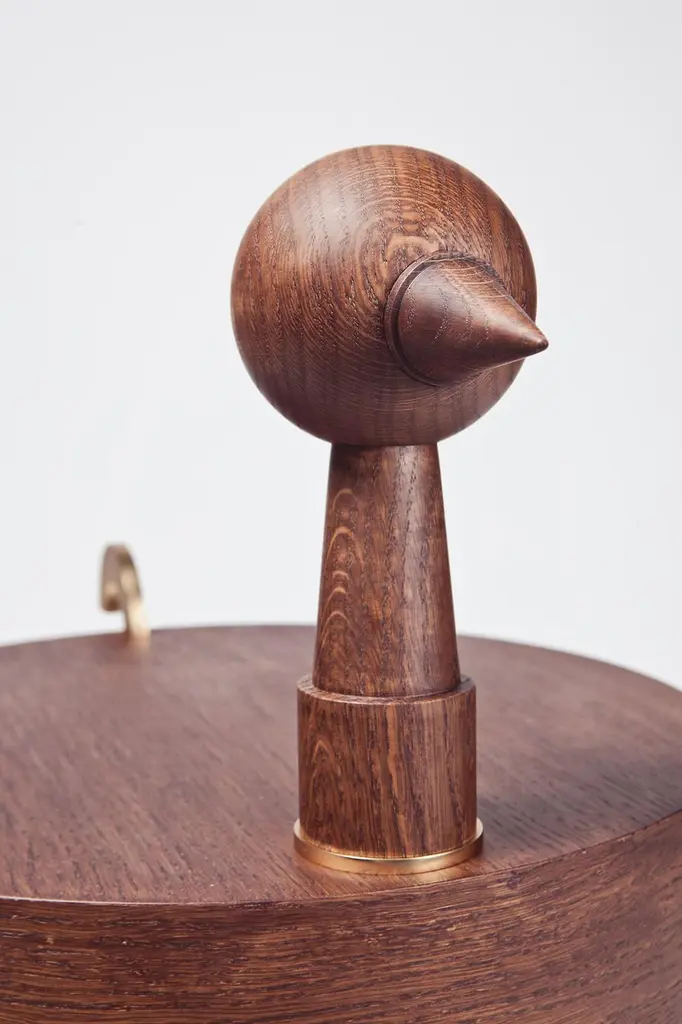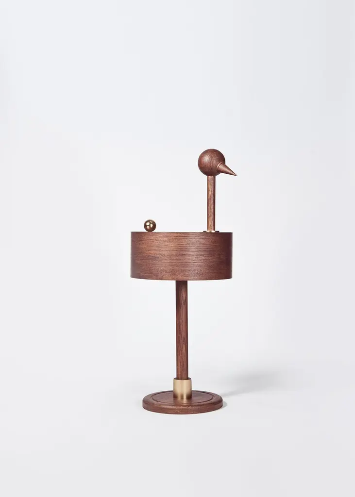 Rara Avis XL side table by EditiioLimited edition of 24 pieces, numberedMaterials: french oak and 24K gold plated steelDimensions: D 38 x H 95 cmRara Avis is the result of a dialogue between art and design. Miquel Aparici and Mermelada Estudio talked about finding a way to converge their works.As a result of that, they merged the characteristic work of Miquel into a collection of side tables.In order to achieve this goal, the artist explored different species of birds and then made 18 sculptures that Mermelada Estudio interpreted with their own language finding the balance between volumes, materials and proportions. Finally, they carefully selected the four fun birds that make up this elegant family of side tables.Created from the assembly of basic geometric shapes, they are handmade in Spain by master cabinetmakers who manufacture Spanish handmade guitars and by metalworkers who specialize in the production of art pieces. The first volume is made of French oak and 24K gold-plated steel.In 2012 working from the premise of excitement and fun, Mermelada Estudio decided to create “Editions”, a project that was born out of their need to express their most artistic concerns. It was a bold way of looking at contemporary luxury design through a collection of sculptural objects in a limited series which were made with care and delicacy using the highest quality materials available.Seven years later having gained a lot of experience, they decided to go back to the project and to their artistic roots but with a new, more mature approach. “Editiio” poses a dialogue between art, design and crafts.From the heart of Barcelona, the team gives free rein to all their interests and poetic ideas, combining this with the “savoir faire” of the best Spanish artisans, to create editions with personality that are exquisitely executed.The work of Miquel Aparici (Barcelona ,1963) is an extraordinary collection of animal sculptures, to which the artist gives life through assemblage techniques. He recycles objects in disuse and uses some beautiful antique pieces. His work is characterized by simplicity, since most of his pieces contain few elements. The end result is one of elegant compositions. His work has been exhibited in galleries around the world (New York, Miami, Copenhagen, Amsterdam, Freiburg, Madrid, Vienna and Milan, among others).Mermelada is an Industrial Design studio founded by Laura Blasco, Juanmi Júarez and Alex Estévez. The three met in Barcelona after years of training in design schools in Spain, England and Italy, and embarked on a creative journey with the common goal of finding the extraordinary in the ordinary. Since working together they have collaborated with companies such as Kettal, Rs, Fermob, Kvadrat, Moroso, BD Barcelona or Mexa among others.