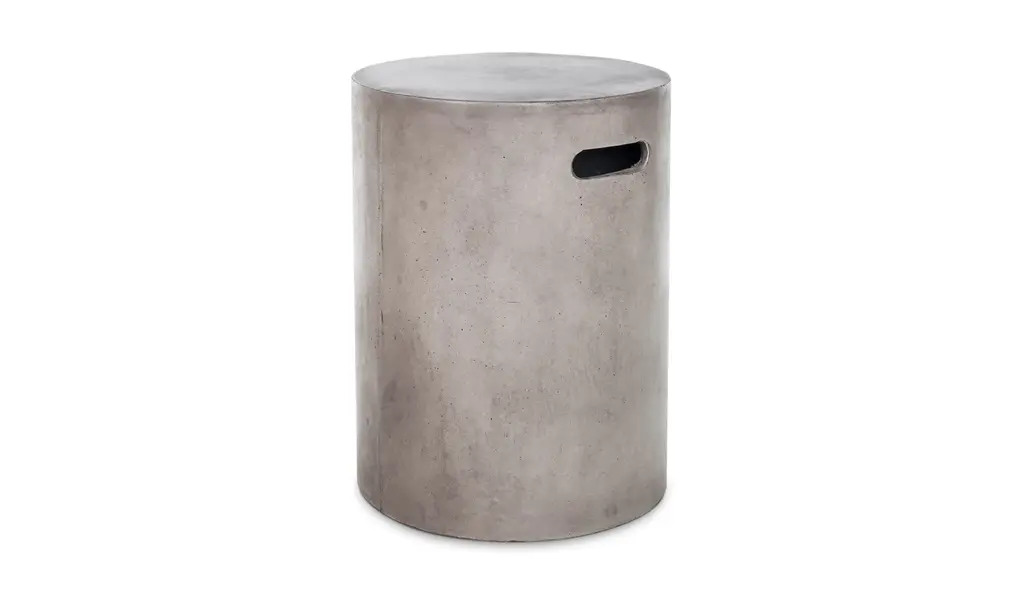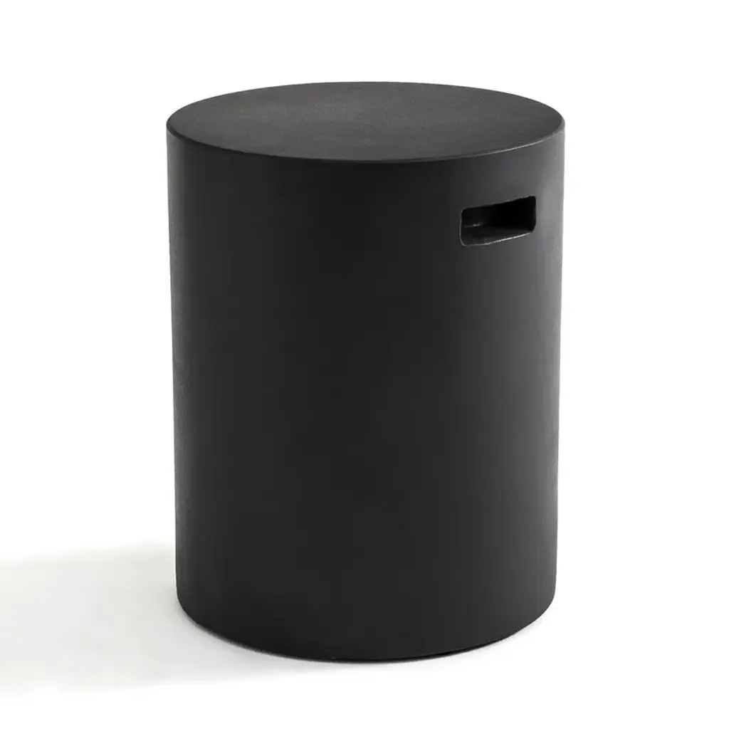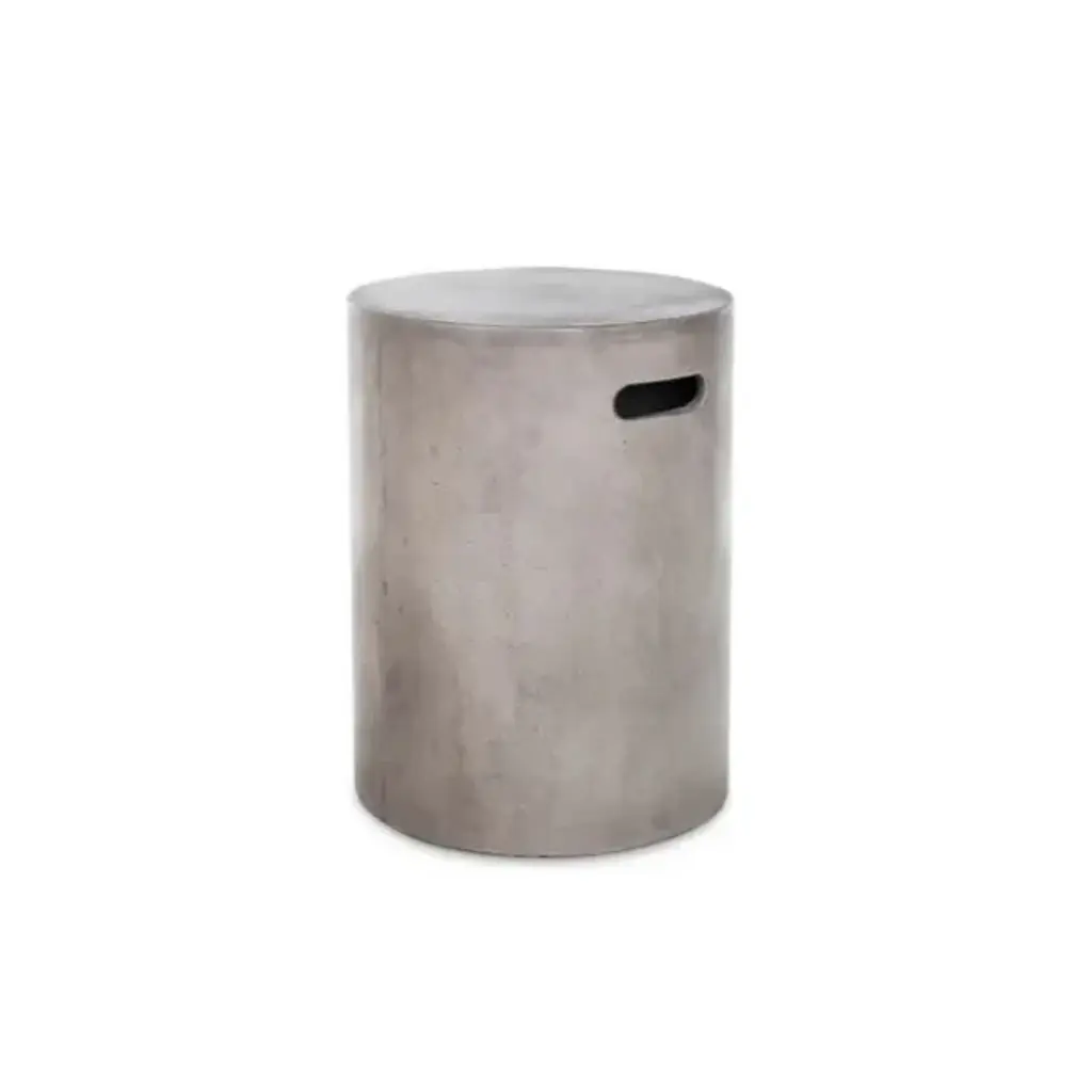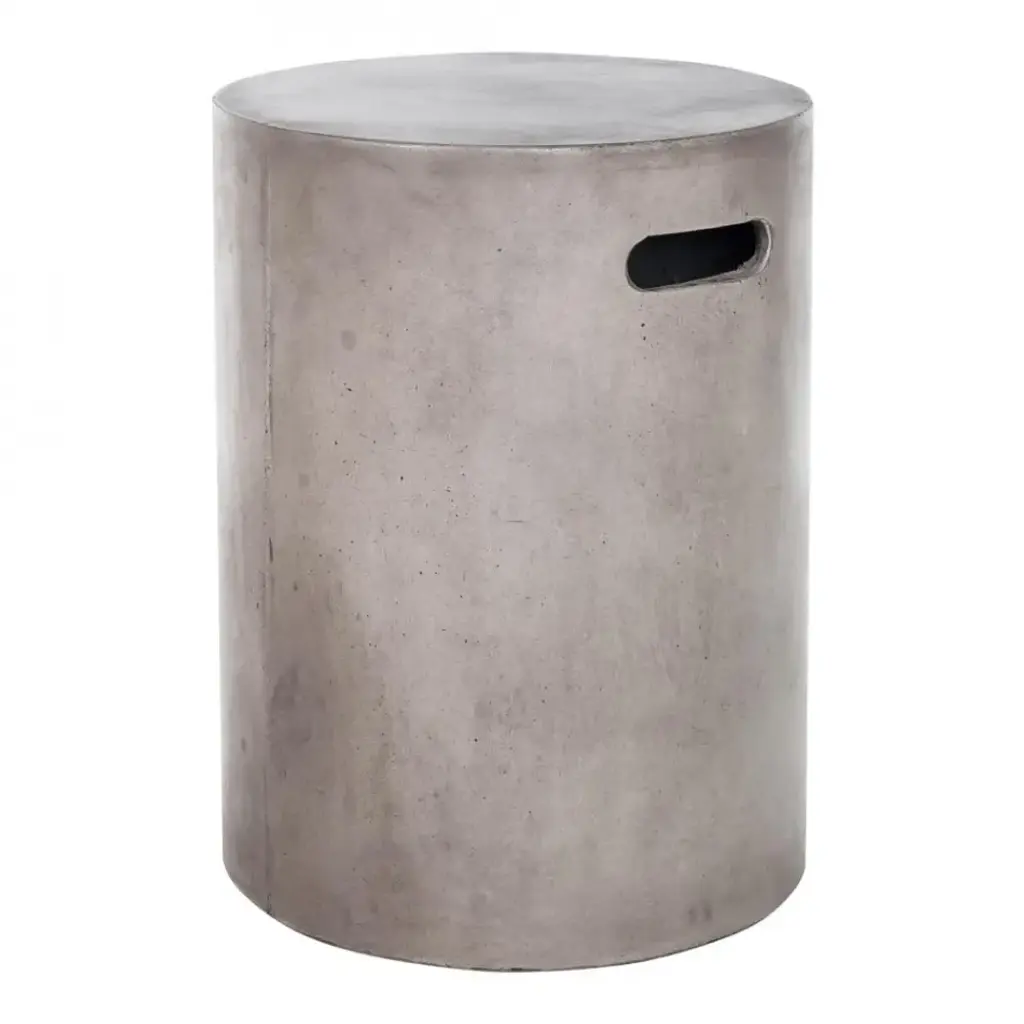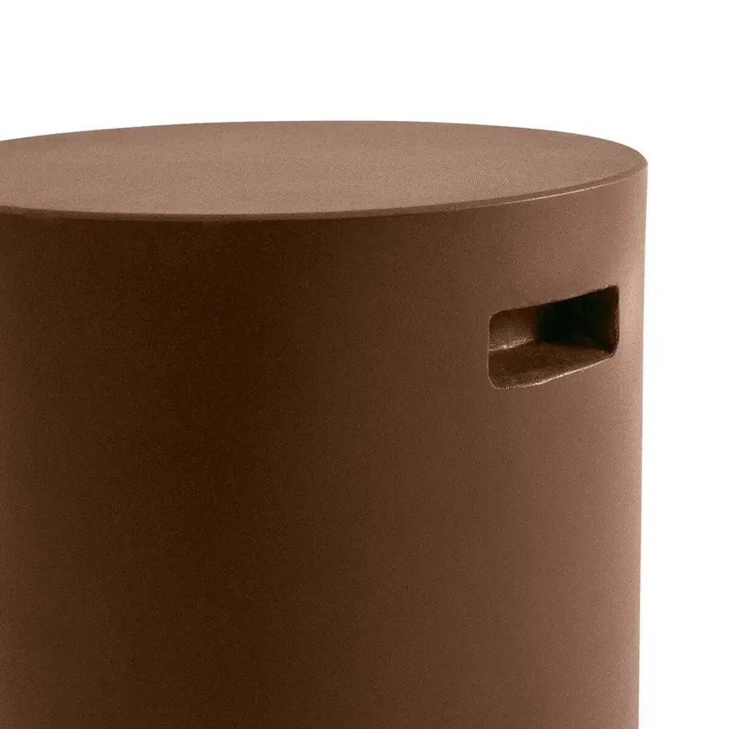 With its rough shape, irregular appearance and cylindrical form, the Raskin coffee table has handles. Its manufacture and light texture make it easy to move and ideal for outdoor living.Cement-effect fibreglass