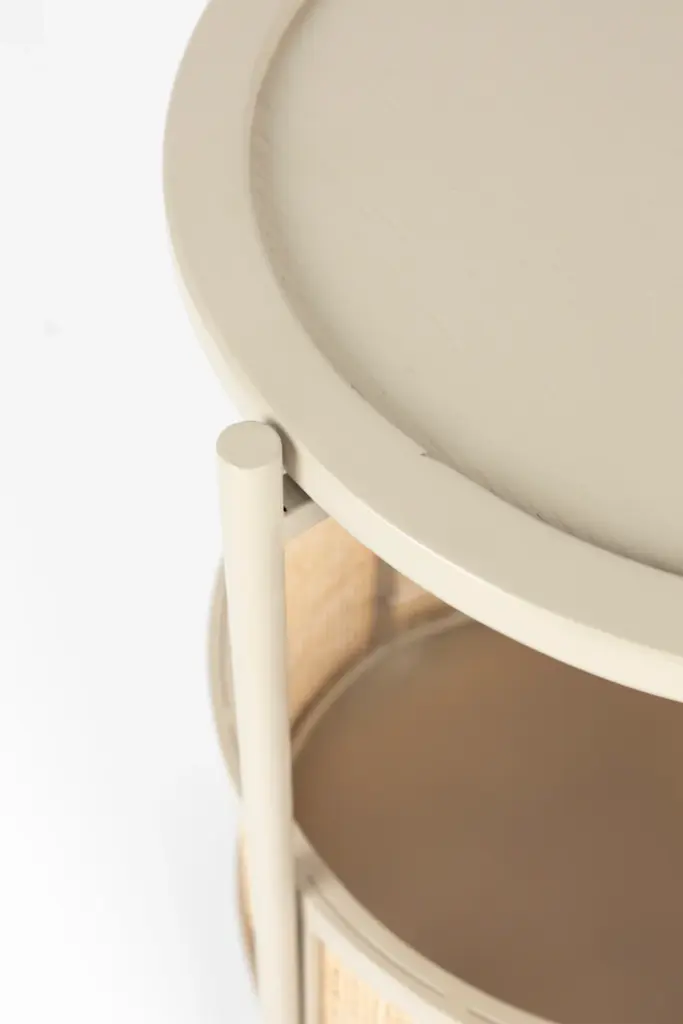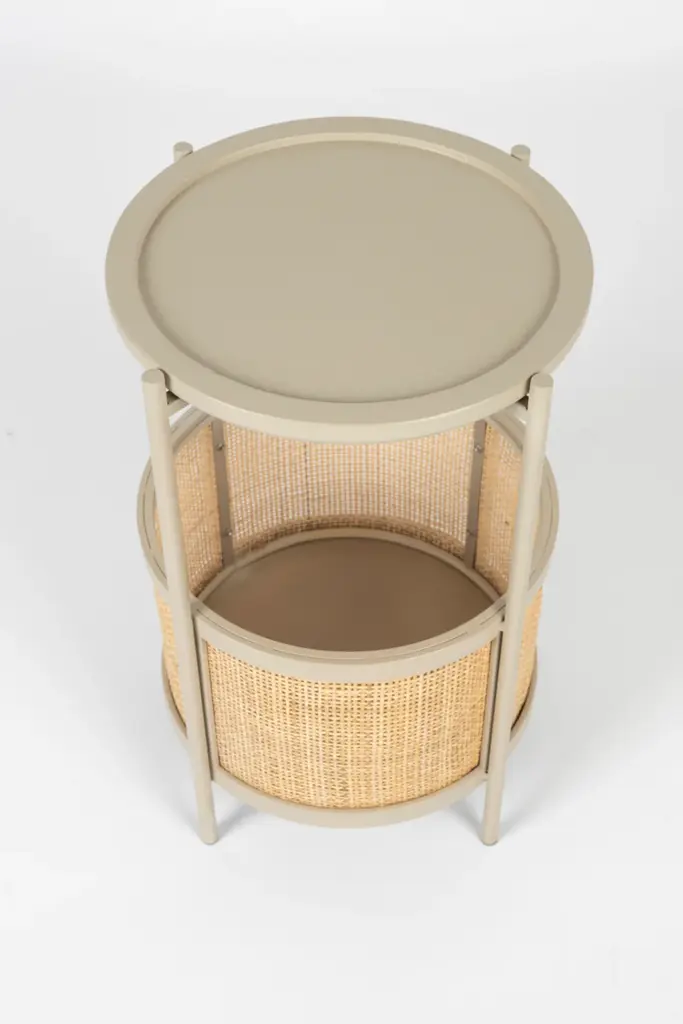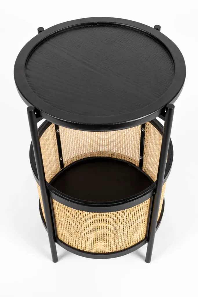 Makoto side table by DF takes advantage of the beauty of natural materials with its stunning combination of wood and rattan. It has a warm quality incorporated in the modernist design that fits almost any interior scheme.