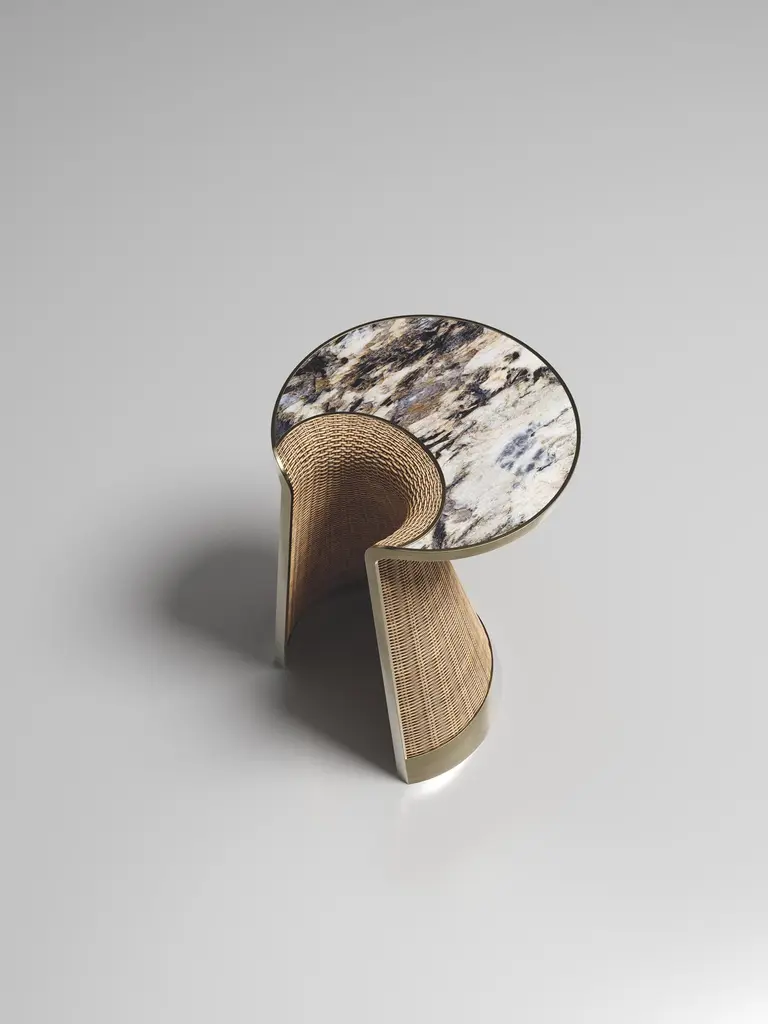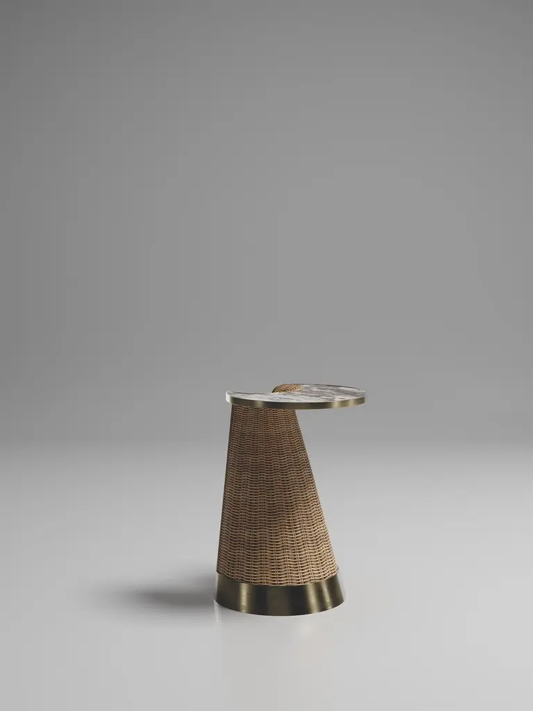 The Paris based label has distinguished themselves since their launch, with their iconic use of shagreen mixed with brass and other exotic materials. All furniture is handcrafted by skilled artisans, ultimately making each piece unique, designed in Paris and produced in the Philippines.The Nymphea medium nesting side table by R & Y Augousti is a part of their new Rattan capsule launch. The piece explores the brand's iconic DNA of bringing old world artisanal craft into a contemporary and utterly luxury feel. This piece is done in a natural woven rattan finish, with a Patagonia inlaid top and bronze patina brass details. This listing is for the medium nesting side table, the large & small pieces as well as the full set are available to purchase on separate listings. Part of the Augousti Rattan capsule, see images of the collection at end of slide. Custom sizing/finishing on request.Design SKU reference: NT20The dimensions of these pieces are:Side table M- 37.9 x 55 cmThe other pieces measure:Side table L - 41.4 x 60.3 cmSide table S- 34.5 x 50 cmAll R & Y Augousti pieces are handmade by artisans, ultimately making each piece unique.Acclaimed design duo Ria & Yiouri Augousti have established themselves since the 1990s as pioneers of modern-vintage style through their luxurious Art Deco inspired collections.The Paris based label has distinguished themselves since their launch, with their iconic use of shagreen mixed with brass and other exotic materials. All furniture is handcrafted by skilled artisans, ultimately making each piece unique. All shagreen-covered items should be kept out of direct sunlight, color variants may occur on the stingray and other exotic finishes, but this showcases the Parisian label's commitment to creating authentic luxurious products using natural components.Wipe clean with soft dry cloth.
