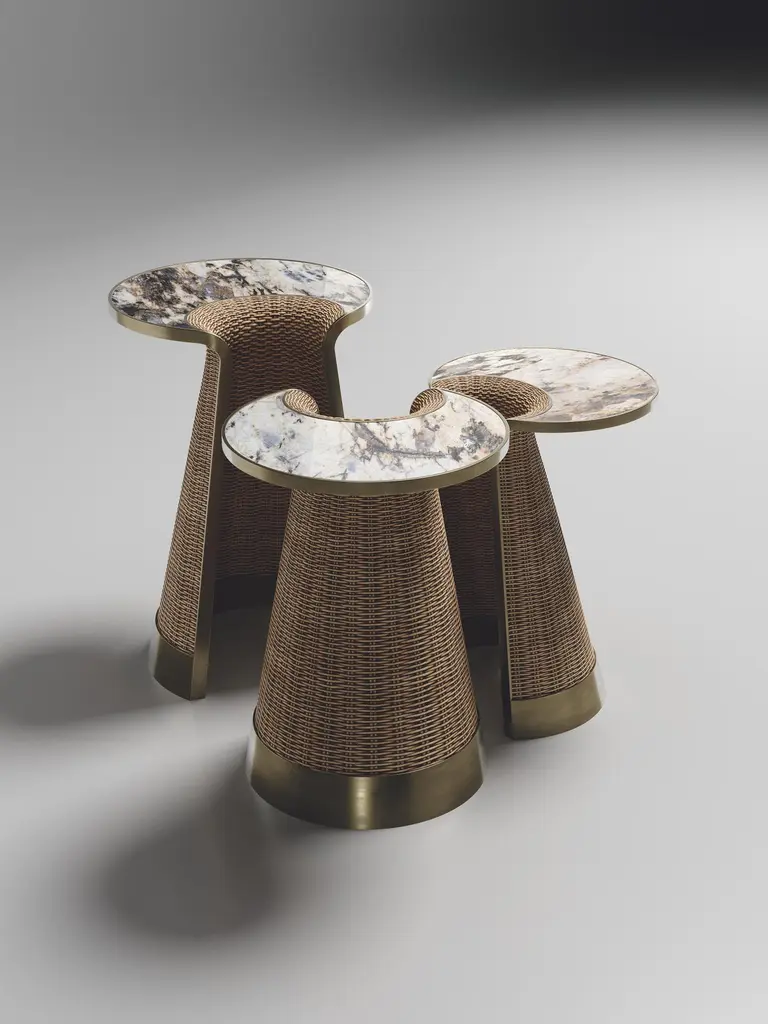 Rattan Nesting Side Table With Patagonia And Brass Inlay By R&y Augousti