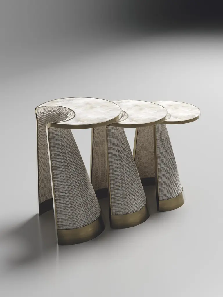 Rattan Nesting Side Table With Quartz And Brass Inlay By R&y Augousti