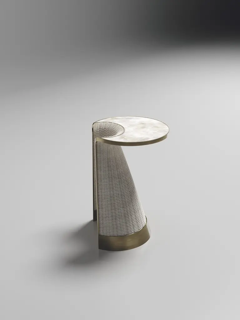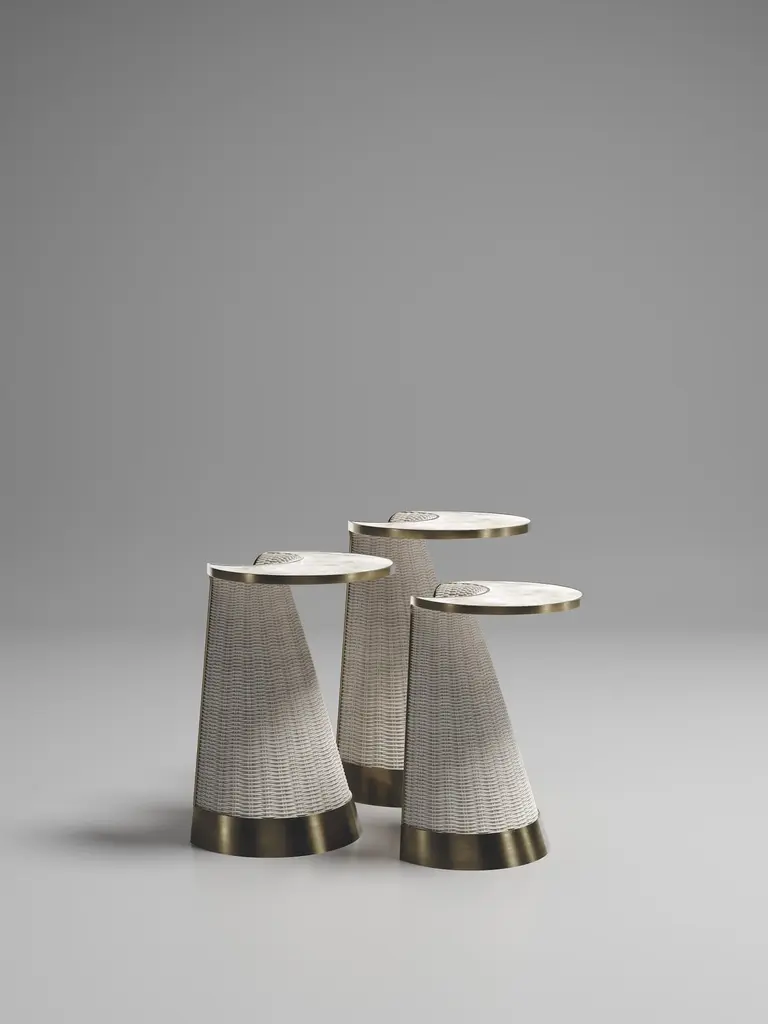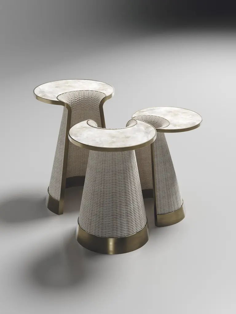Rattan Nesting Side Table With Quartz And Brass Inlay By R&y Augousti