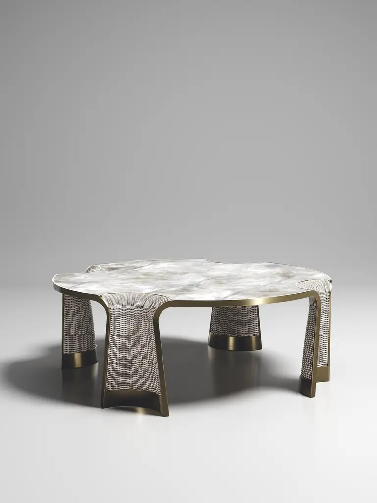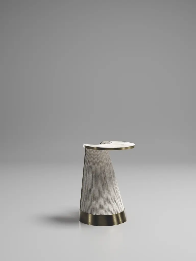 The Paris based label has distinguished themselves since their launch, with their iconic use of shagreen mixed with brass and other exotic materials. All furniture is handcrafted by skilled artisans, ultimately making each piece unique, designed in Paris and produced in the Philippines.The Nymphea small nesting side table by R & Y Augousti is a part of their new Rattan capsule launch. The piece explores the brand's iconic DNA of bringing old world artisanal craft into a contemporary and utterly luxury feel. This piece is done in a cream woven rattan finish, with a smokey white quartz inlaid top and bronze patina brass details. This listing is for the small size, the large and medium as well as the complete set are available to purchase on separate listings. Part of the Augousti Rattan capsule, see images of the collection at end of slide. Custom sizing/finishing on request.Design SKU reference: NT20The dimensions of this piece is:Side Table S- 34.5 x 50 cmThe other nesting pieces measure:Side Table L - 41.4 x 60.3 cmSide Table M- 37.9 x 55 cmAll R & Y Augousti pieces are handmade by artisans, ultimately making each piece unique.Acclaimed design duo Ria & Yiouri Augousti have established themselves since the 1990s as pioneers of modern-vintage style through their luxurious Art Deco inspired collections.The Paris based label has distinguished themselves since their launch, with their iconic use of shagreen mixed with brass and other exotic materials. All furniture is handcrafted by skilled artisans, ultimately making each piece unique. All shagreen-covered items should be kept out of direct sunlight, color variants may occur on the stingray and other exotic finishes, but this showcases the Parisian label's commitment to creating authentic luxurious products using natural components.Wipe clean with soft dry cloth.