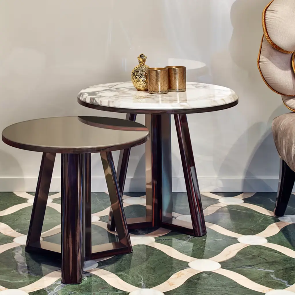 Its simple look and fine materials make this side table a contemporary classic, available in two different sizes. Please ask the Concierge for further details.