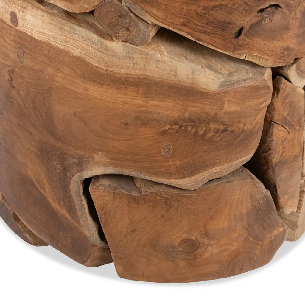 Rayne Coastal Beach Brown Teak Wood Round Side Table