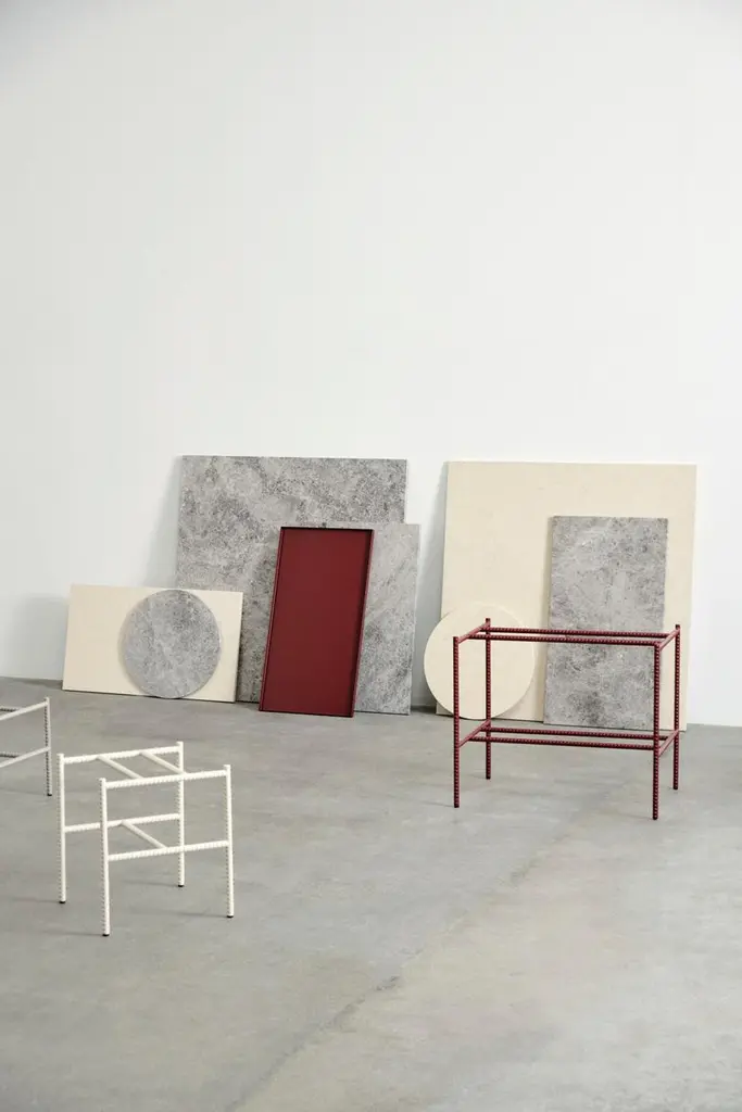 Rebar Side Table - Alabaster Powder Coated Steel/beige Crema Diva Marble For Hay