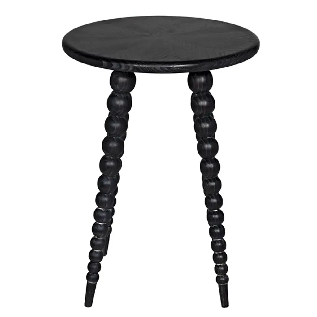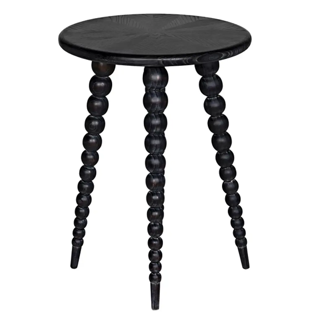 The Rebecca Side Table from Noir showcases stacked spheres in graduating sizes that create a playful yet sophisticated profile. Mindi wood carved into perfect orbs forms legs that appear to defy gravity while providing substantial support. The circular top maintains thematic consistency while offering practical surface area for everyday items. Unlike conventional tables with predictable leg arrangements, this whimsical design turns structural elements into decorative features. Each sphere has been carefully shaped and aligned, demonstrating exceptional craftsmanship and attention to detail. This imaginative piece serves as a conversation starter while fulfilling its functional purpose in living rooms, bedside arrangements, or accent spaces.