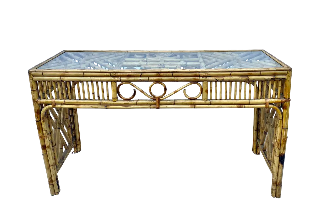 Natural Rattan Side Table: Made exclusively for Creel and Gow in Morocco.Measures: 29" x 20.5" x 20.5" H